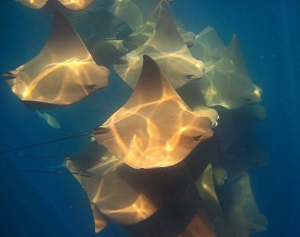Dawn found us northwest of and nearing Isla del Carmen. Calm seas are the best for searching for marine mammals, and this was a day of glassy water with bands of wind-generated ripples extending as far as one’s gaze could see. Occasional bottlenose dolphins were in the distance but seemed uninterested in our passage. Later in the morning a few of these large dolphins approached the ship for bow riding, while in the distance others leaped high out of the water or rode within the waves of our wake.