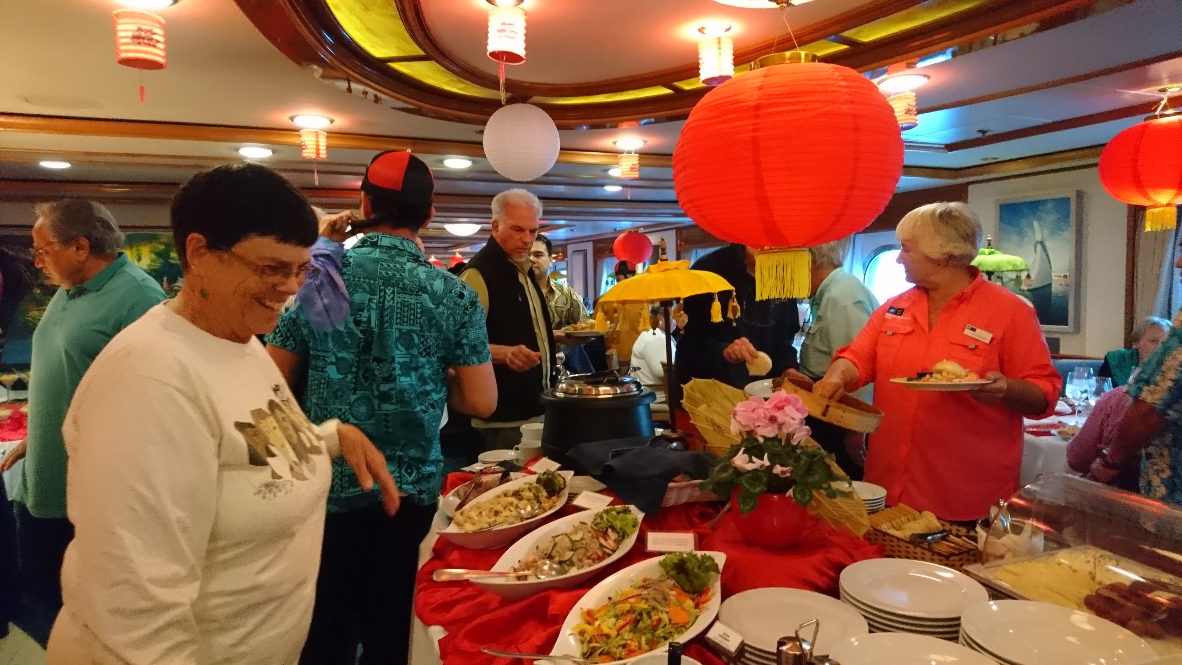 The orb became visible on the dusty horizon and slowly grew brighter. The seas were roughed up by a stiff wind, and there were only a few seabirds about. As the day progressed, the winds picked up, and the seas grew restless. More seabirds were sighted, once again showing us that they are masters at handling all kinds of weather. Our day was packed with many activities. In between, we quickly set about packing and sorting last minute things in preparation for our departure from the ship. The meals, the wine, and the coffee all took on a different flavor. For sure, part of the day was spent up on the bridge taking in the enormity of the Atlantic Ocean. Teatime was a very special one. It included Swedish pancakes, part of a long tradition on the ships. The lively chatter in the bistro was a strong indicator of how much we enjoyed this delicious delicacy. During cocktail hour, we enjoyed the Guest Slideshow, which offered ample opportunities to laugh and reminisce about the remarkable journey we have all shared. This was followed by our Captain’s farewell speech and an opportunity to thank many of the crew who have cared for us so wonderfully during our long voyage. By late afternoon, we were in the lee of the island of Madeira. The city of Funchal rose steeply up the volcanic slopes of the island until we lost sight of it. The hazy conditions that were with us at the start of the day continued to accompany us. However, we were all relieved that the sea state was calm and soothing. We were grateful that the night would be quiet to allow us to prepare for our visit to Madeira.