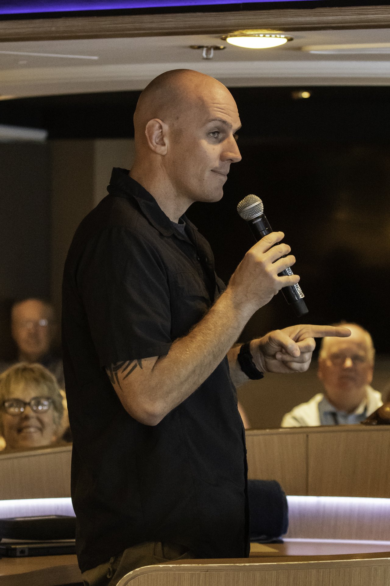 A day at sea always gives us time to contemplate the adventures ahead of us, to prepare our thoughts, our feelings and our cameras for the worlds we are about to experience. It has been a restful day, with introductions to the staff and presentations on photography and the changing climate of the Arctic. We’re all feeling ready to go and we’re getting pretty excited about it all.