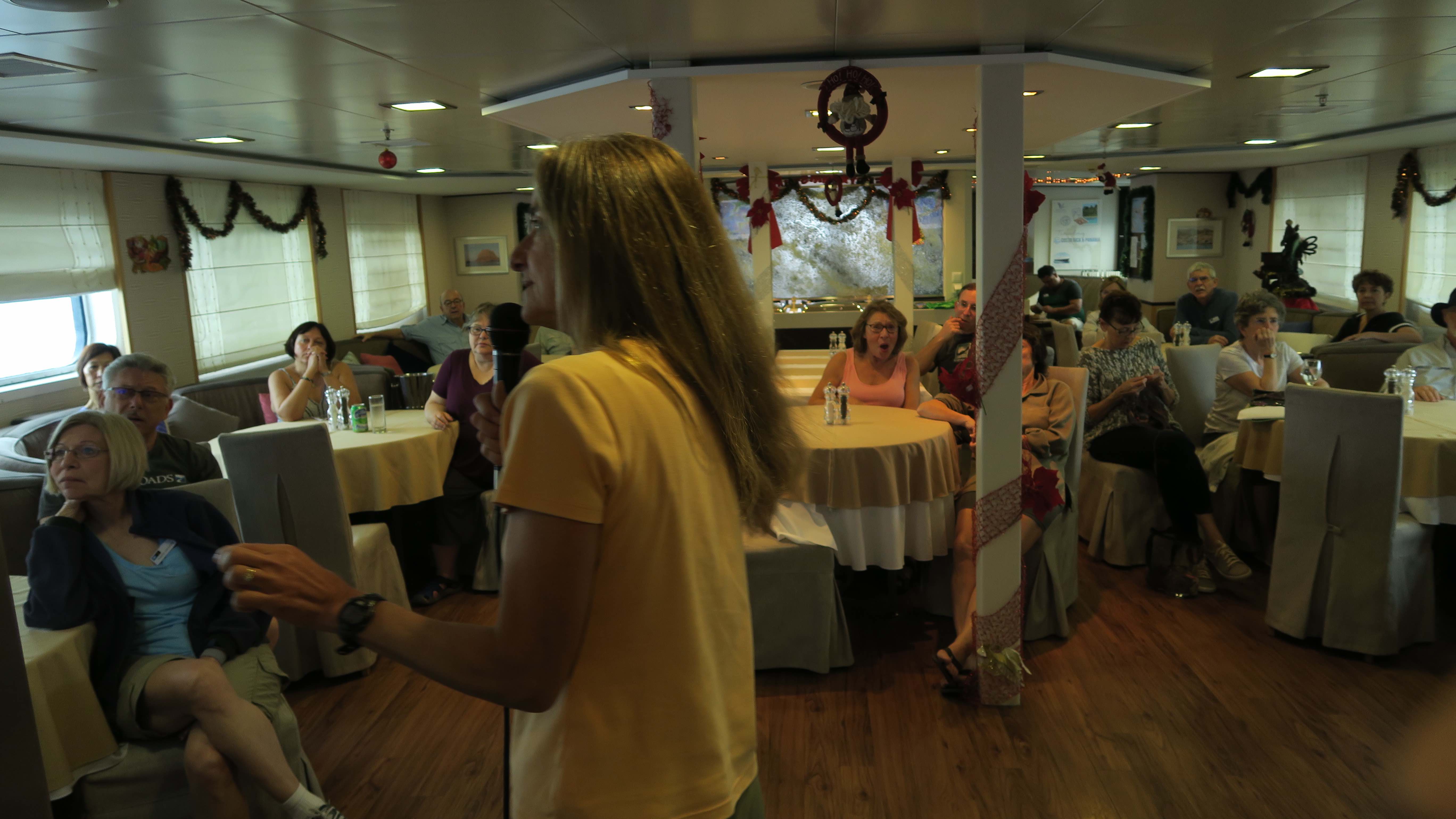 Today we traveled from Casilda Bay toward Siguanea Bay on the southwestern coast of Isla de Juventud. Since our guests could not leave the ship we had various activities spread out through the day. Our first activity was a lecture by Berit Solstad who presented “Cuba’s Seas and Shores”, a lecture that covered ocean life, currents, coral reefs, and much more. The second activity was a Domino lesson in “Viradito” by our Cuban guide Juan Jose. Right before lunch Fabio Esteban presented the talk “Photography 101: an Introduction to Photographic Techniques.” Later in the day we had two additional lectures: the first one by Juan Jose was titled “The History of Cuba” and the second one, by Fabio Esteban, was titled “Advances in Cave Research in Cuba”. After dinner there was a movie, Yank Tank, and all went to sleep.