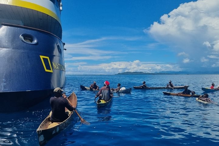 National Geographic Orion spent a peaceful day sailing across the Pacific Ocean towards New Caledonia with brisk winds and following seas. The day started with a fascinating presentation by Tua Pittman, our Cultural Navigator, on human settlement in the Pacific. In the afternoon, Mike Greenfelder, Undersea Specialist, gave an engaging presentation on, “Top Ten Reef Fish Families.” The day was capped off with cocktail hour and recaps by the expedition staff, which helped build excitement for our adventures at New Caledonia.