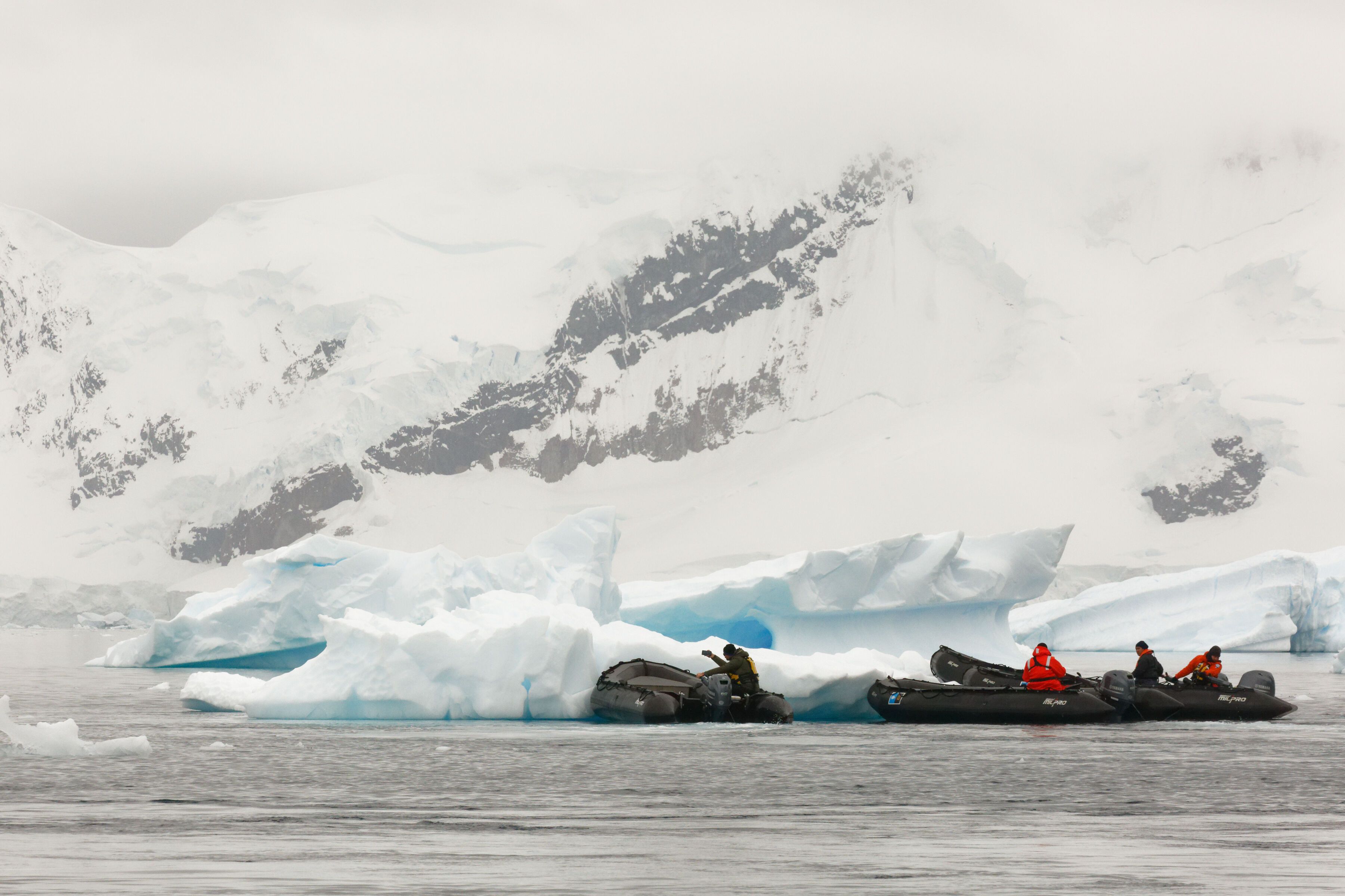 This morning found National Geographic Orion a little farther south. With the change in latitude came a change in weather. Rain greeted us early in the day, and seas were a bit rougher than days past. Everyone spent time relaxing after the festivities of Christmas and enjoying great food—all day. There were some excellent staff presentations about plankton, seabirds, and the history of National Geographic. With the winds picking up, New Zealand seabirds swarmed around the ship. As we bobbed and swayed south, the sun set on another ocean adventure. What a day!