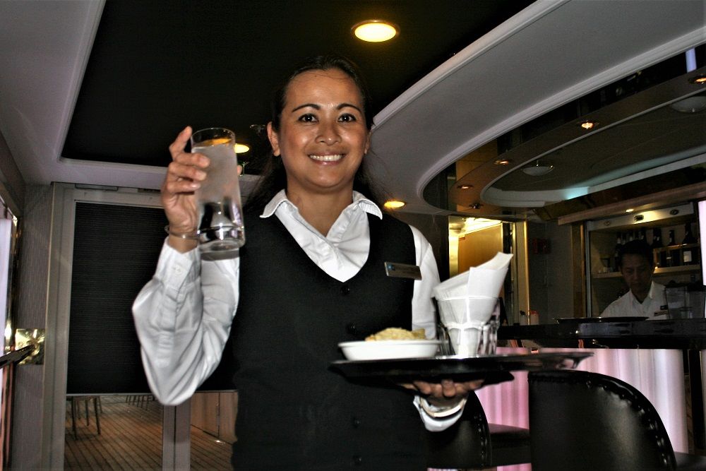 Perfect cruising conditions on this last sea day with blue skies and calm seas. Throughout the day the expedition staff offered presentations on marine life and local culture. There was time to honor the 60 crew members from nine countries (48 alone from the Philippines) who put so much effort in making our voyage safe and enjoyable. Not only do they work very hard, but they also spend part of their free time with rehearsals to demonstrate their hidden talents in the very popular crew show.