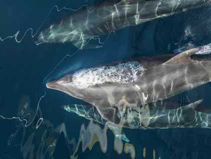 Interspersed with the whale and sea turtle sightings were pods of bottlenose and common dolphins feeding, bow riding, and leaping out of the sea! The clear turquoise water made viewing and photographing them especially interesting, and our deck lunch surrounded by acrobatic common dolphins was one we will long remember.