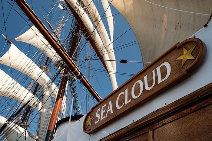 The sun rose at 7:01 a.m. in an azure sky with some scudding cumulous clouds on the horizon. The wind was 16 knots from the port. Our National Geographic staff was introduced and their backgrounds provided. At 9:30, the sailors went to the sail stations and the captain gave a step-by-step introduction to what sails were being hoisted and their function. Sea Cloud carries an incredible amount of sail—about 3,000 square meters (32 thousand square feet)—and can do almost 12 knots under optimum conditions. That speed is remarkable considering that she is about 2,500 tons. It’s amazing to watch the sailors confidently climb up the masts—especially the main mast, which is 178 feet high. Sea Cloud is stunningly beautiful under sail.