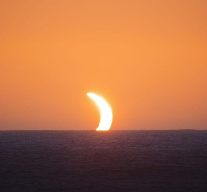 As we sailed in and out of fog all day, we kept our eyes peeled from the windows on the bridge and all around the ship for signs of seabirds and marine mammals. By dinner time, the clouds had lifted for us to enjoy a beautiful sunset, feeling grateful for the luck and magic we’ve experienced so far on this trip, wondering if that would continue long enough for the much-anticipated total solar eclipse event early tomorrow morning.