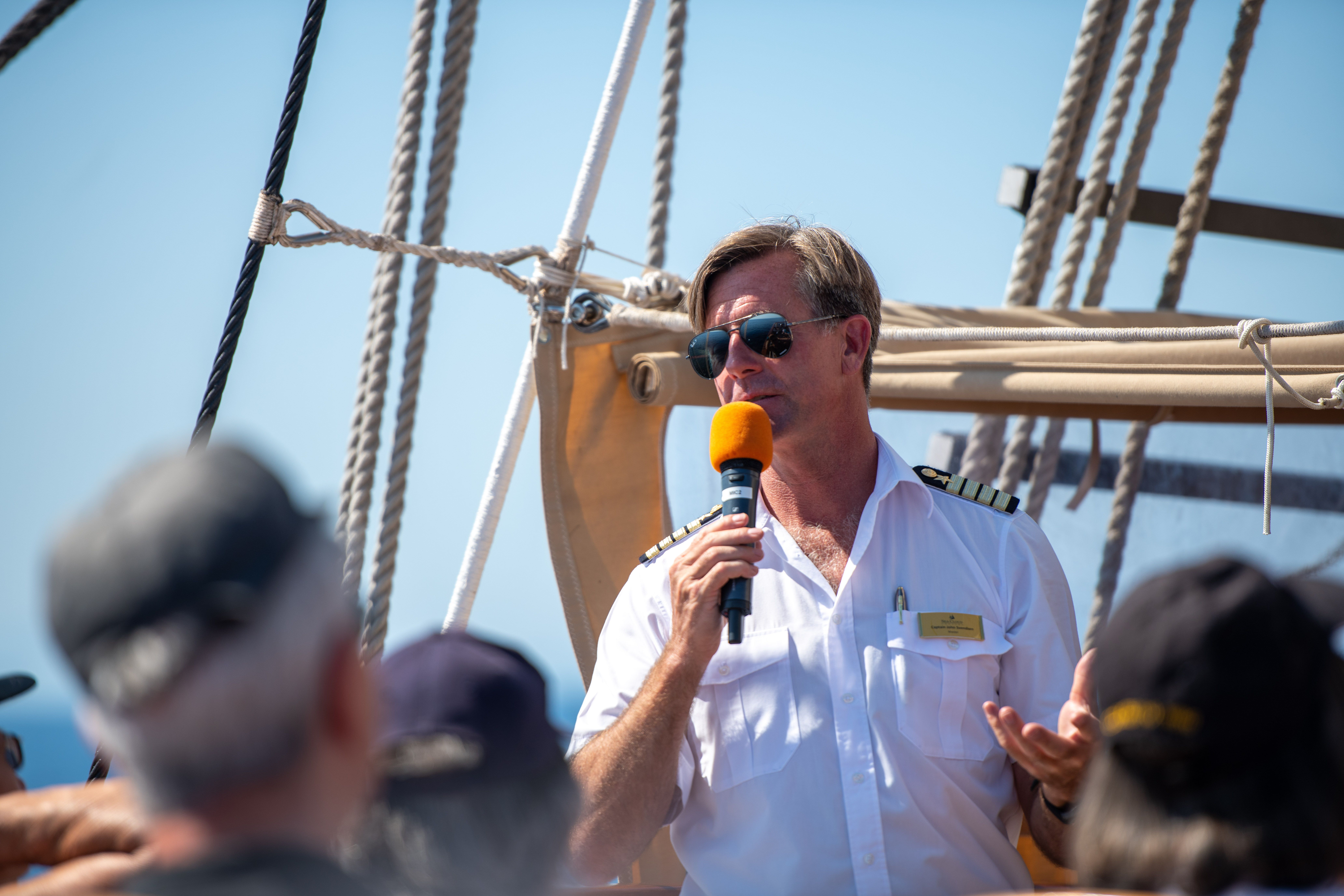 We woke this morning to fair winds and pleasant seas, a perfect morning for sailing. After breakfast, our captain gave us a detailed and enthralling sail description on the spanker deck, with a play by play of how the deckhands go aloft to set the sails. We learned all the names of the masts and a lot of the history surrounding the traditional art of sailing. The captain told us all about the process and even included some of the history of the Sea Cloud. This beautiful ship is as much the destination as the actual places we are seeing. Built in 1931, she still maintains much of the original art and construction. When you walk around deck, you are transported to a different time.