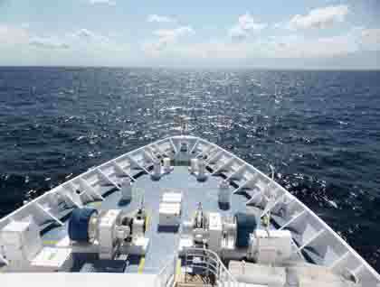 This morning, we were able to have a nice sleep-in as the National Geographic Orion travelled north to Com, East Timor. Sea conditions were kind to us, and most of us were up and enjoying the sunrise, while others hit the gym for a morning workout or joined Kat for morning stretches.