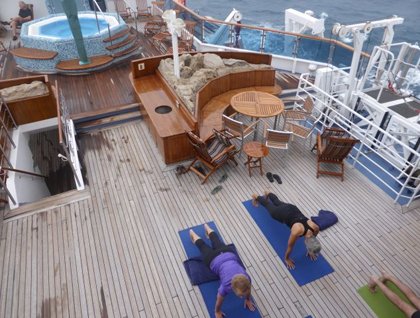 Our sea day encouraged many early risers outdoors to feel the open waters and sense the free flowing breeze that is the lovely invitation of the open sea. Coffee and freshly baked pastries beckoned us to the outdoor café and to wake us slowly after a couple of days snorkeling and, for some still arriving into a new time zone, a very welcome chance to sleep in.