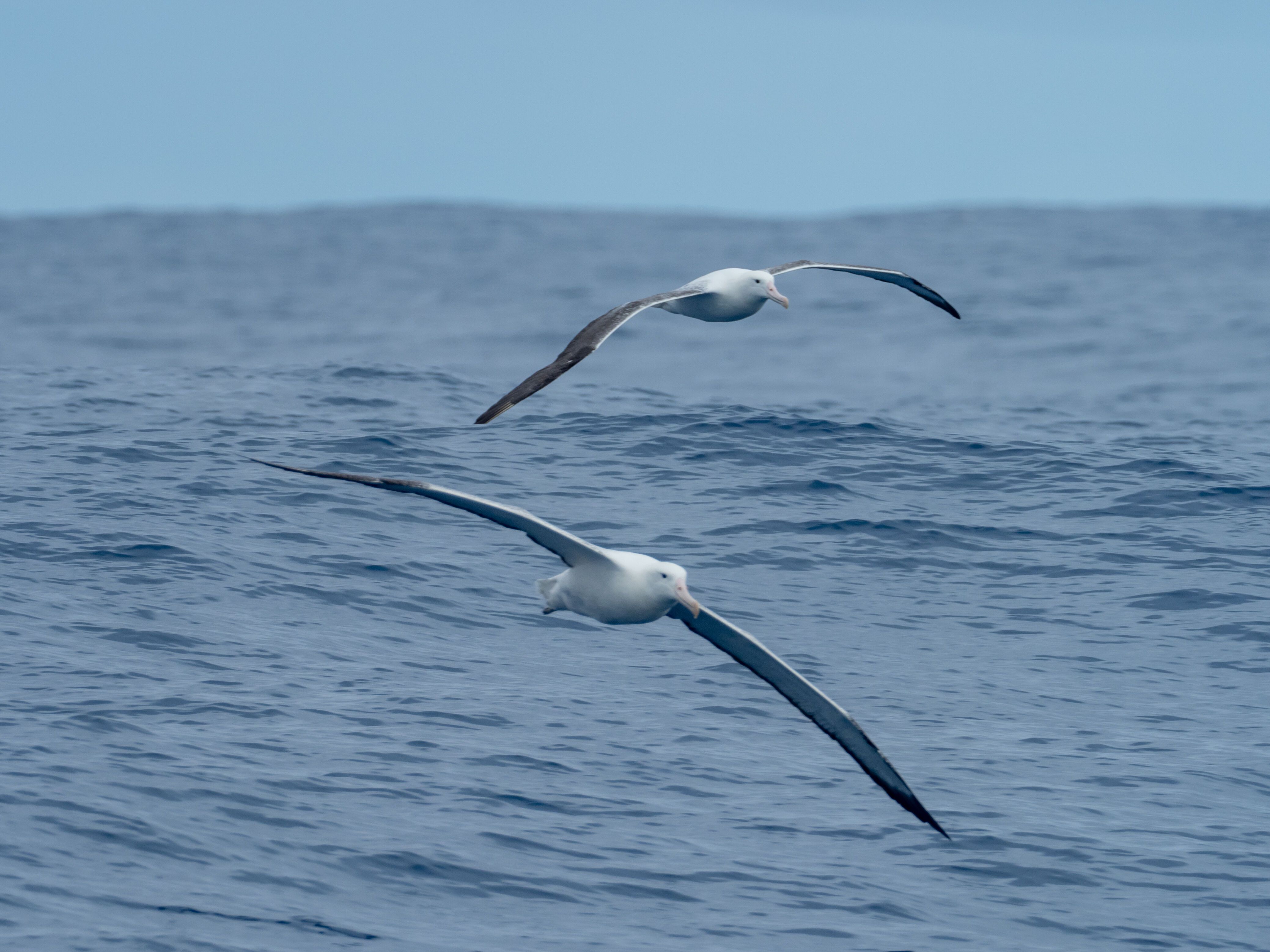 Upon awakening and until we fell asleep, albatrosses and other seabirds escorted us constantly. Over ten royal albatrosses were constantly in view; with a wingspan of eleven feet, these are impressive birds. At times, fifty albatrosses surrounded us, along with over a hundred other birds, including the fan favorite, Cape petrels. Sunny skies and glassy seas allowed for endless photo opportunities. What a day!