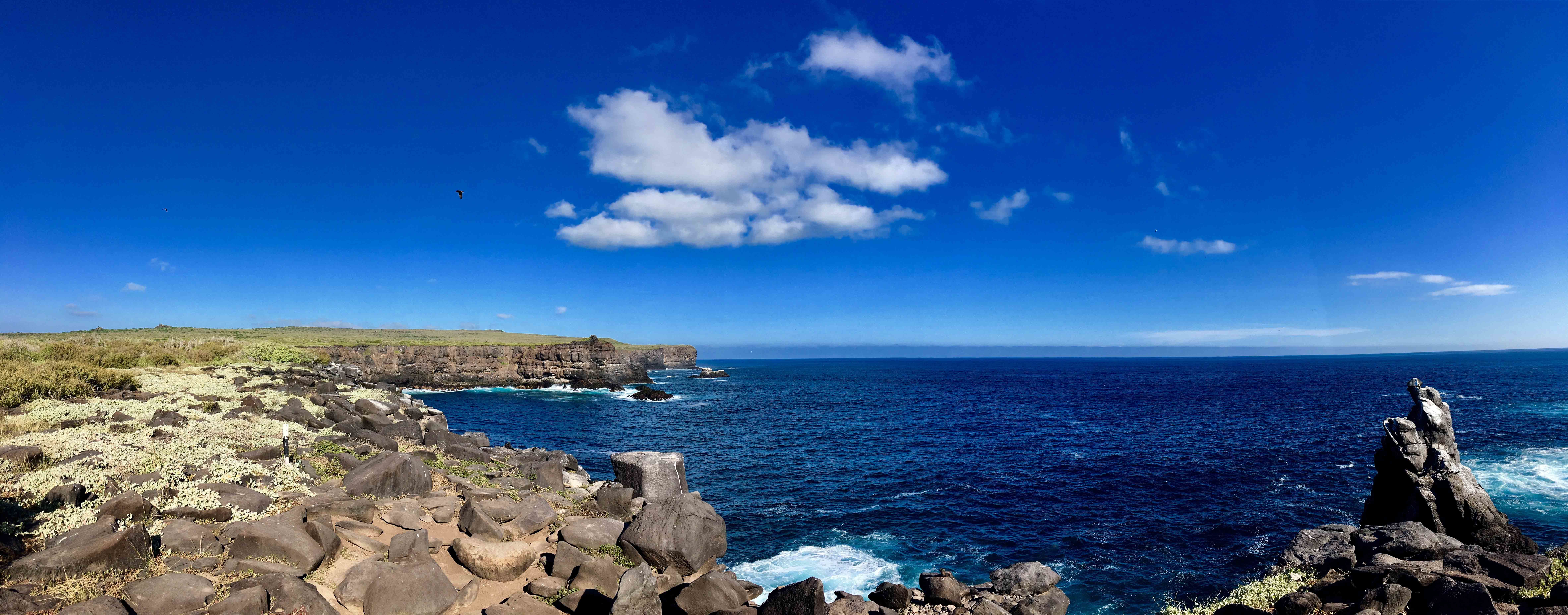 This morning, National Geographic Orion awoke off the uplifted shores of Makatea in the Tuamotu archipelago. Makatea is a unique island in a chain of atolls. Unlike the rest of the Tuamotu chain, Makatea is an uplifted coral atoll. Makatea once looked like the other Tuamotus, a ring of coral with a stunning turquoise lagoon. Around two million years ago and 150 miles southwest, Tahiti began to form. The weight of the new volcanic island depressed the seafloor beneath it, creating a bulge that lifted Makatea out of the water. The geologic uplift is fascinating, and Makatea is unique in that it is one of three important phosphate deposits in the Pacific. This deposit was discovered around 1860. By 1908, an enterprise had formed that led to its extraction. Using shovels and buckets, men from Japan, China, Vietnam, and Polynesia extracted 11 million tons of phosphate in the 55-year span of the operation. After breakfast, we went ashore to explore this fascinating island. Birders searched for the three island endemics while hikers visited viewpoints and walked across the island amongst cavernous holes of uplifted coral where the phosphate was extracted. At the end of the road, our reward was a cold-water swim in an amazing cave! After lunch, we did a drift snorkel off the almost continuous band of cliffs that make up the amazing coastline of Makatea. Photo caption and photographer: Viewpoint overlooking beautiful Makatea. Photo by Elise Lockton