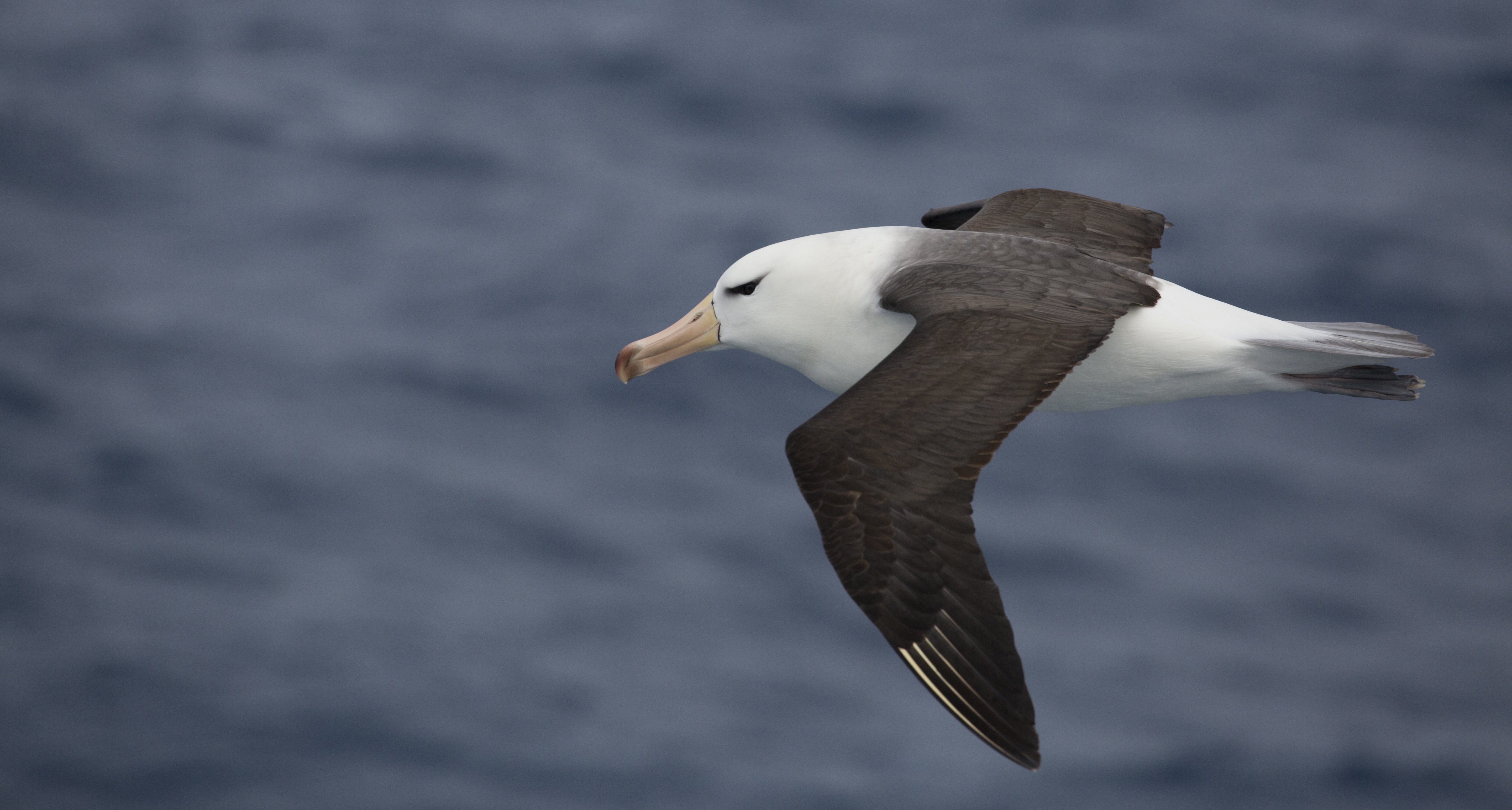 Today the seas were calm and the water blue as the National Geographic Explorer steamed towards the sub-Antarctic island of South Georgia. Yesterday the ship left the British territory of the Falkland Islands, where the guests spent the day hiking and Zodiac cruising around these spectacular locations. South Georgia and the Falkland Islands are similar geographically, but differ hugely biologically. South Georgia is south of the Antarctic convergence, meaning the current system pushes cold water down to surround the island. The seawater temperature around the Falkland Islands sits in the low 40s on the Fahrenheit scale, about 6 degrees on the Celsius scale. South Georgia, by contrast, sits with a seawater temperature of 32 degrees Fahrenheit, zero degrees Celsius. This changes the entire ecosystem, from the kelp communities to the fish that can thrive in the ocean, all the way up to the seabirds and whales that survive in these conditions.