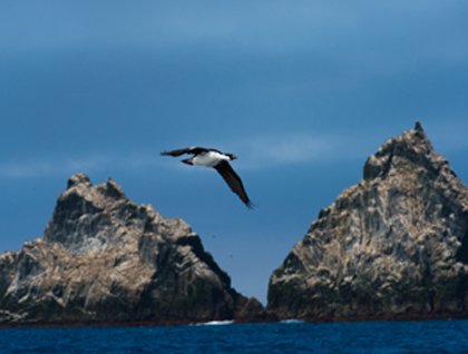 About mid-day we passed Shag Rocks. Named for the numerous South Georgia cormorants, or shags, nesting there, the rocks seemed out of place in the wide expanse of ocean.