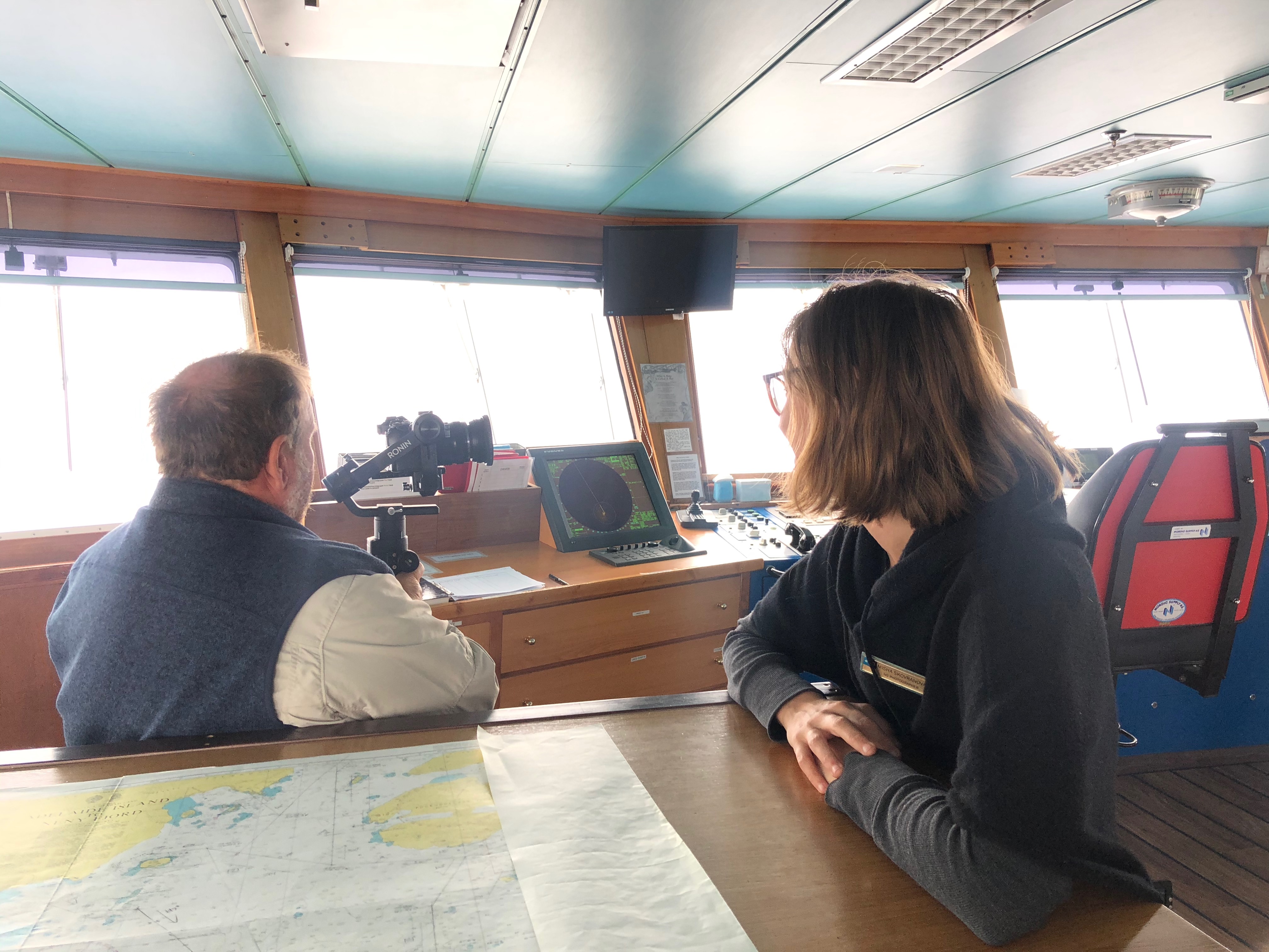 The day began with a thick fog that encompassed the ship and made for some tricky spotting conditions. It was the same kind of fog that has been written about by sailors in times gone by, as air and sea disagree on temperature and wrap everything in an eerie silence. Under this blanket, our photo team experimented with exciting new gizmos and gadgets on the Bridge.