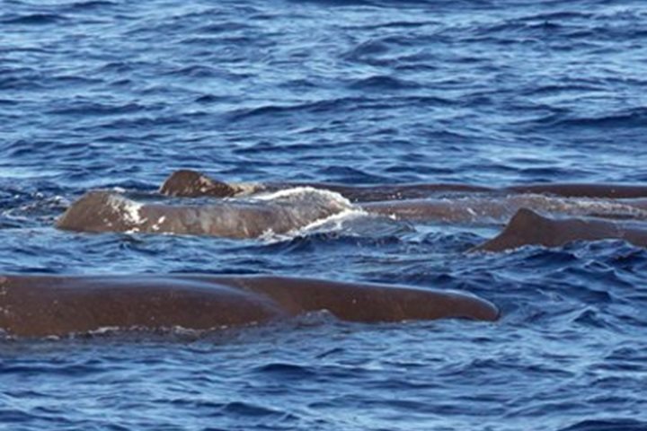 We enjoyed nice calm conditions as we sailed towards Madeira. Throughout the day we heard several excellent presentations. We also had a chance to catch up on editing the numerous photos of our time in the Azores. The day’s highlights were the two exciting marine mammal sightings of sperm whales and then a blue whale! In the mid-morning, the announcement was made that the eagle-eyes on the bridge had sighted a sperm whale. Sperm whales are the largest of all the toothed whales and are regularly seen around the Azores. We were fortunate to see a small group of four whales just resting at the surface, including a calf of the year near. Sperm whales are the deepest divers of all the marine mammals, reaching depths close to two miles deep and can stay sub-surface for close to two hours. After all that time, they need to spend at least 20 minutes or more resting at the surface, slowly breathing to get ready for the next dive. We saw the calf rolling over a bit and the whales were right next to the ship so we had a fantastic look at their massive heads, wrinkly bodies and broad flukes. Then just before recap there was another call about a large baleen whale sighted just ahead of the ship. National Geographic Explorer definitely brakes for whales so the ship turned and after a good look we discovered that it was the largest animal to live on the planet, the mighty blue whale! North Atlantic blue whales can reach lengths over ninety feet. They were hunted close to extinction during the whaling era and it is a rare sight to see one in these waters. The whale was turning on its side and lunging through the water feeding. The ship was also slowly turning in circles so the whale was probably feeding on plankton that our propellers were bringing up to the surface. We had fantastic looks at the whale as it slowly swam alongside and even under the hull of the ship. It was a very exciting day at sea but it is not often you can say that you have seen the largest of all the toothed whales and the largest animal on the planet in the same day, especially in the North Atlantic!