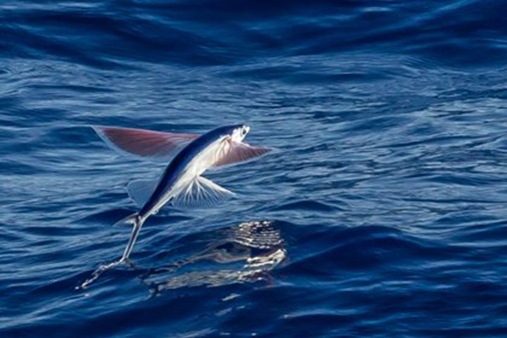 Late last night the National Geographic Explorer officially crossed the Tropic of Cancer that this year lies 23 26’ 16” north of the equator. There was no bump in the night, as this is an imaginary line so named because when the sun reaches its zenith on the northern summer solstice at this latitude, it is entering the astrological sign of Cancer. This is no longer true due to the phenomena known as the precession of the equinoxes. The International Astronomical Union tells us that the sun is now actually in the constellation of Taurus at the boreal summer solstice. The southern hemisphere counterpart is named the Tropic of Capricorn. When it was named, the sun lay in the astrological sign of Capricorn on the austral summer solstice, December 21. These imaginary lines are not fixed, but vary in a complicated manner over time. The area that lies between the Tropics of Cancer and Capricorn are officially known as the tropics, with the equator mid-way between the two. With the changes of latitude came a noticeable change in attitude. Warm weather prompted sandals and shorts, with time to enjoy being on deck. Even though it’s October all on board soaked up the sunshine as if it were a summer’s day. The northeast tradewinds were light and provided a comfortable breeze. Overall it was an exceptional day to sail in the Atlantic. In short, the conditions were perfect to be on the bow for glimpses of passing marine life like the occasional sea birds and flying fish. Falling into the easy rhythm of the sea, the day slipped by.