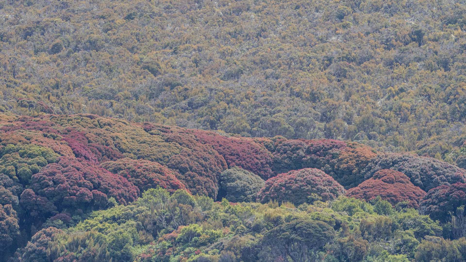 The Auckland Islands are remote, windswept, and spectacular. While “sheltered” in a protected bay from the raging gale blowing outside, we longed to explore what existed nearby. The islands are very green with a strong hint of red at this time of year. The southern rātā tree is flowering, and a gorgeous red hue surrounds us. A few birds pass, including the endemic shag and some distant prions. Keen eyes spot a penguin cruising by us. Enjoying the comforts onboard, we look forward to tomorrow.