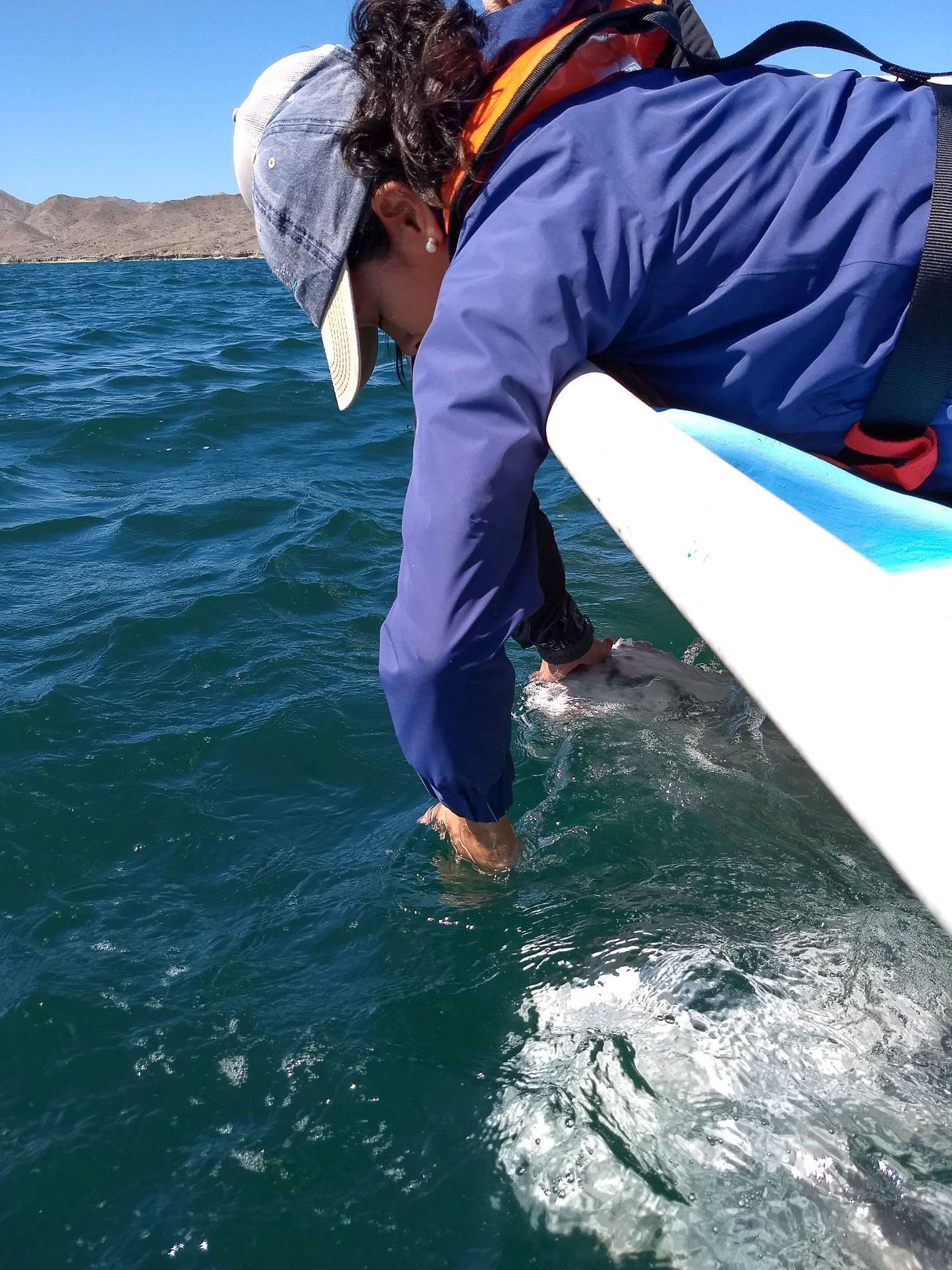 After spreading out into four boats to carefully observe from a distance, we encountered several curious whales. We all saw far more than we’d anticipated, including some sightings of a rare albino whale. One boat was tail-splashed by an adult passing by. Another boat was approached by a gray whale that they petted and scratched, sharing an experience that not one of expeditioners will ever forget. By the end of our visit, we could all gratefully say that we had each seen at least 30 gray whales in only three hours and can’t wait to observe more.