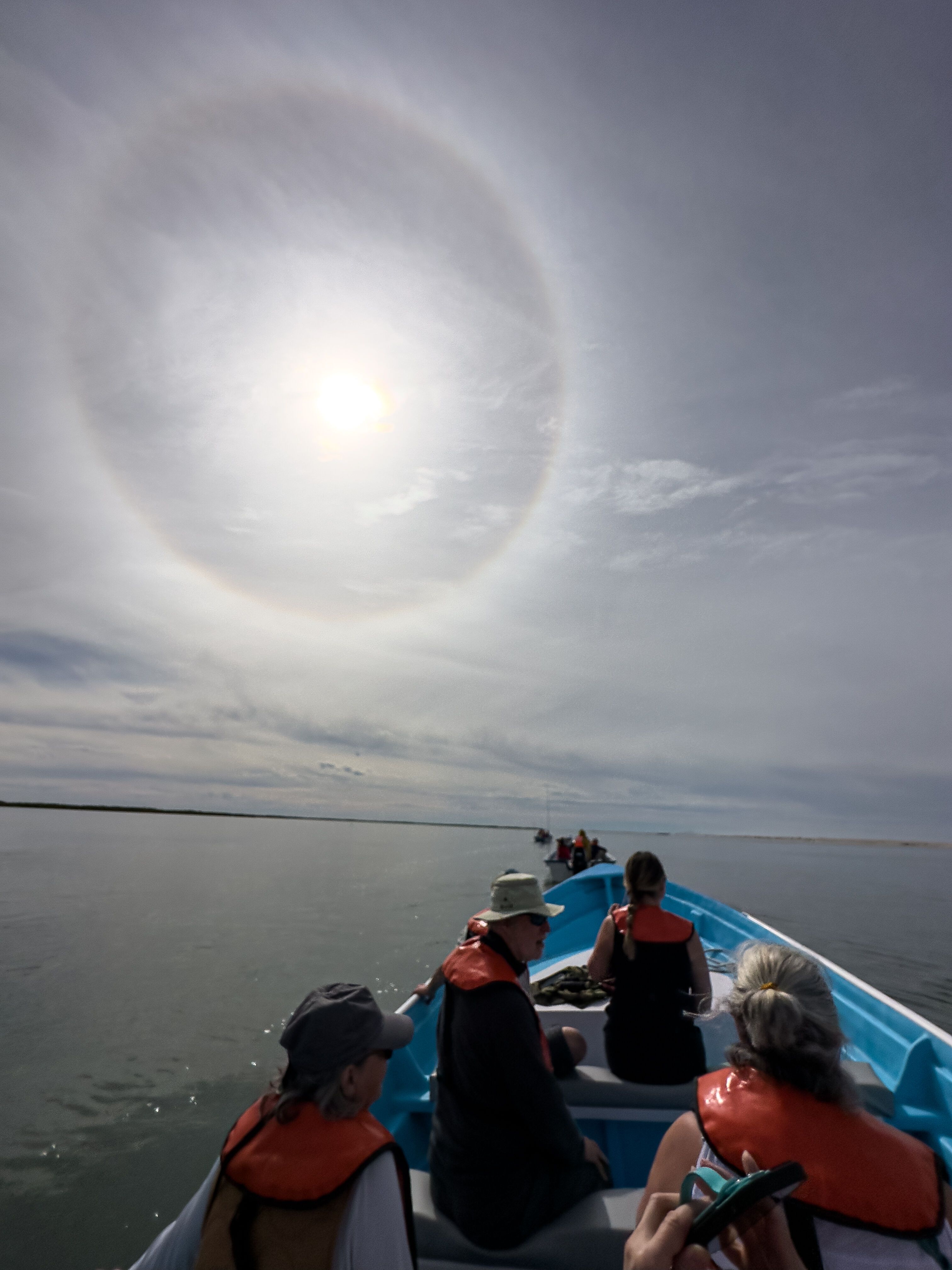 National Geographic Sea Bird had an iconic day among the gray whales of Baja California. It started with a sunrise streaked with reds and oranges and a couple of California sea lions splashing around near the ship. We had a full day of whale watching, one that no one will ever forget. The whales did not seem bothered by our watchful eyes, and a few even approached the pangas with little fear. Everyone was ecstatic, and we returned to the ship with smiles spread ear to ear.