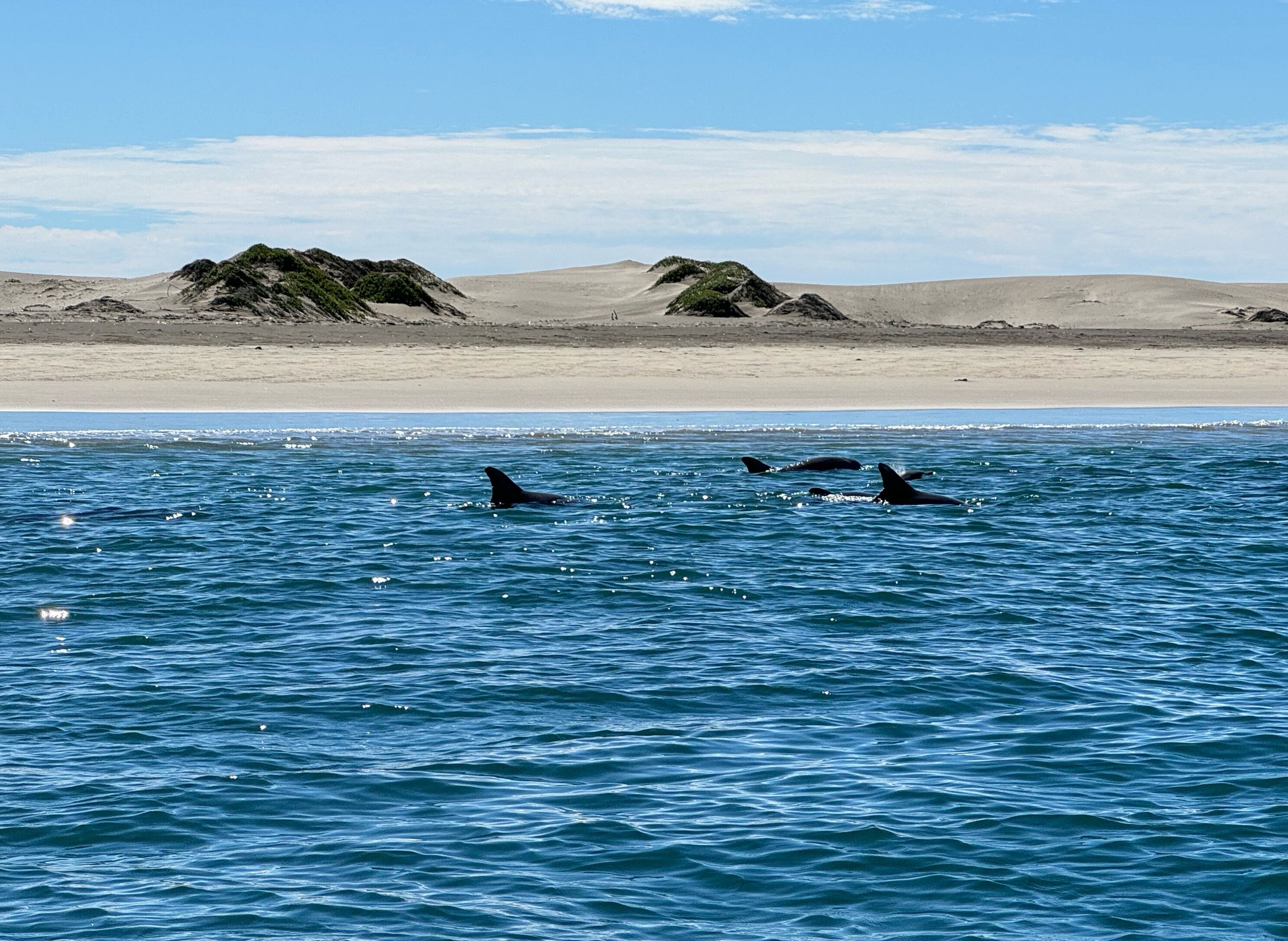 Today was our second day whale watching in Bahia Almejas. Leaving National Geographic Sea Bird, our pangero (panga/boat captain) spotted a magnificent frigatebird with a meal in its beak, a fight ensued between frigatebirds and to the victor went the spoils. When we got out to the boca, where the waves were crashing and the whales had been, we found another boat in need of assistance. The panga from another expedition group’s motor stopped, so our pangeros swiftly moved in to assist the vessel. One of our pangeros attached a line and towed the vessel out of the waves and assisted until another panga came to help them. We only saw a whisper of a whale in the morning, but we saw a pod of bottlenose dolphins eating and some frigatebirds at their nesting site in the mangroves.
