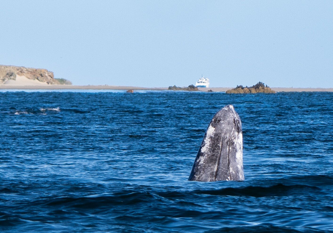 For the afternoon, we set out to get up-close experiences with the marine life. Being in a small boat with our local Mexican guides was a great experience as they navigated the shallow waters of Bahia Almejas and provided us with amazing views of multiple gray whales.