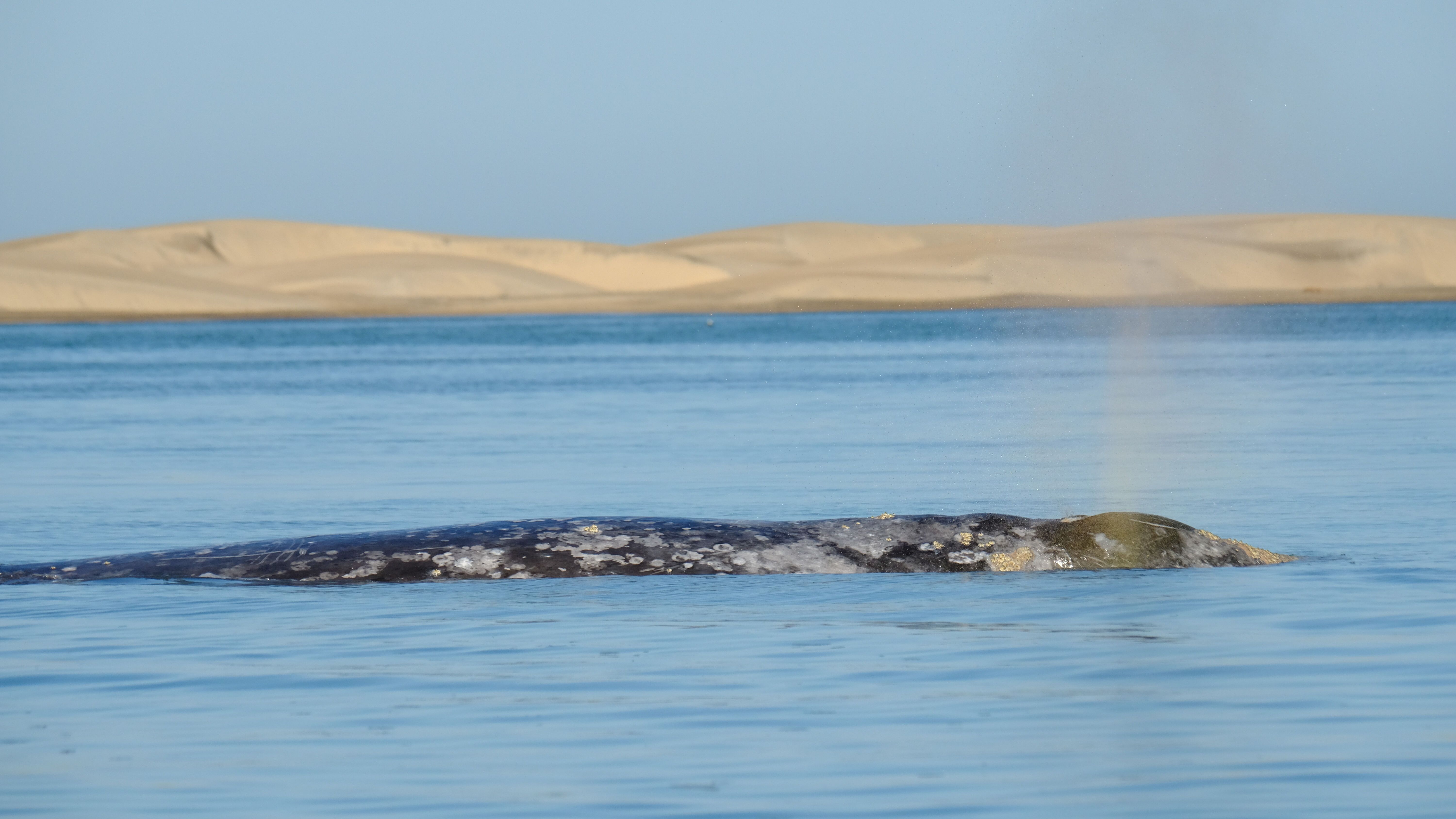 As we cruised around the point and entered the bay, it wasn’t long until we saw our first grey whale. A few spouts were spotted on the horizon, and we sailed over to the location. Throughout the morning, we were treated to a number of grey whales around us, including a few spy-hopping out of the water and even a tail fluke. It is a truly special experience to see these beautiful creatures in their natural habitat.