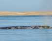 Here we boarded pangas and set out in search of grey whales. Upon reaching the sandbar before the bay, we were treated to sights of both mature and juvenile bald eagles. This is the southernmost point in the world where these birds of prey can be found. There were also hundreds of brown pelicans, Brandt cormorants, sanderlings, and gulls.