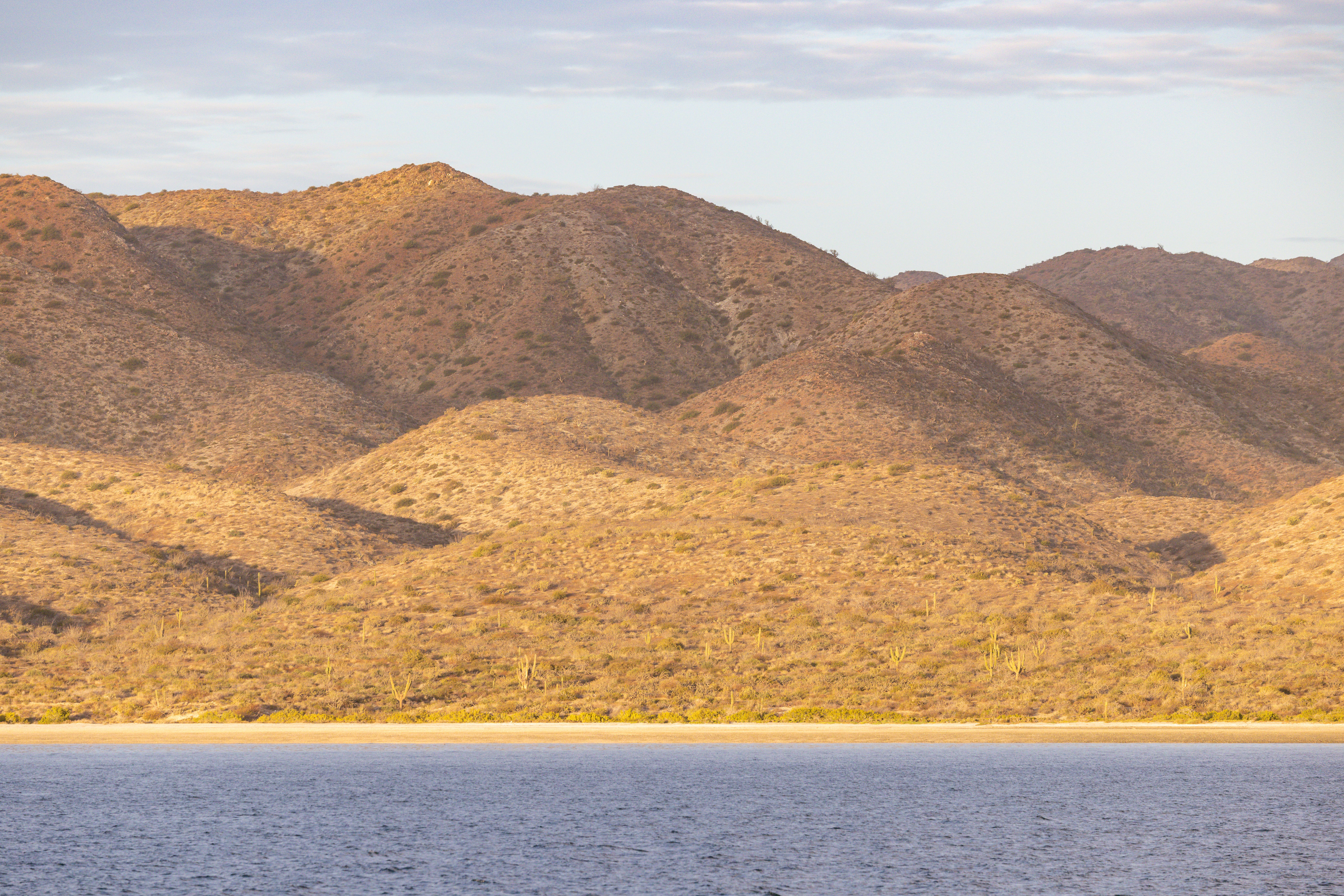 As the sun rose, the hills of Isla Santa Margarita lit up to wake us to our first day in Bahia Magdalena. We had lots of firsts today, as we got to meet our panga drivers and head out to explore the area. Today’s focus was Bahia Almejas, the social center of gray whale hangouts at this time of year. And the whales certainly didn’t disappoint. We had lots of encounters with ‘friendly whales’ coming right up to the pangas and allowing us to touch them. As if that wasn’t enough, there was all sorts of activity like whales breaching, spyhopping, and even some mating! Naturally, one of the highlights was getting whale snot blown all over us!