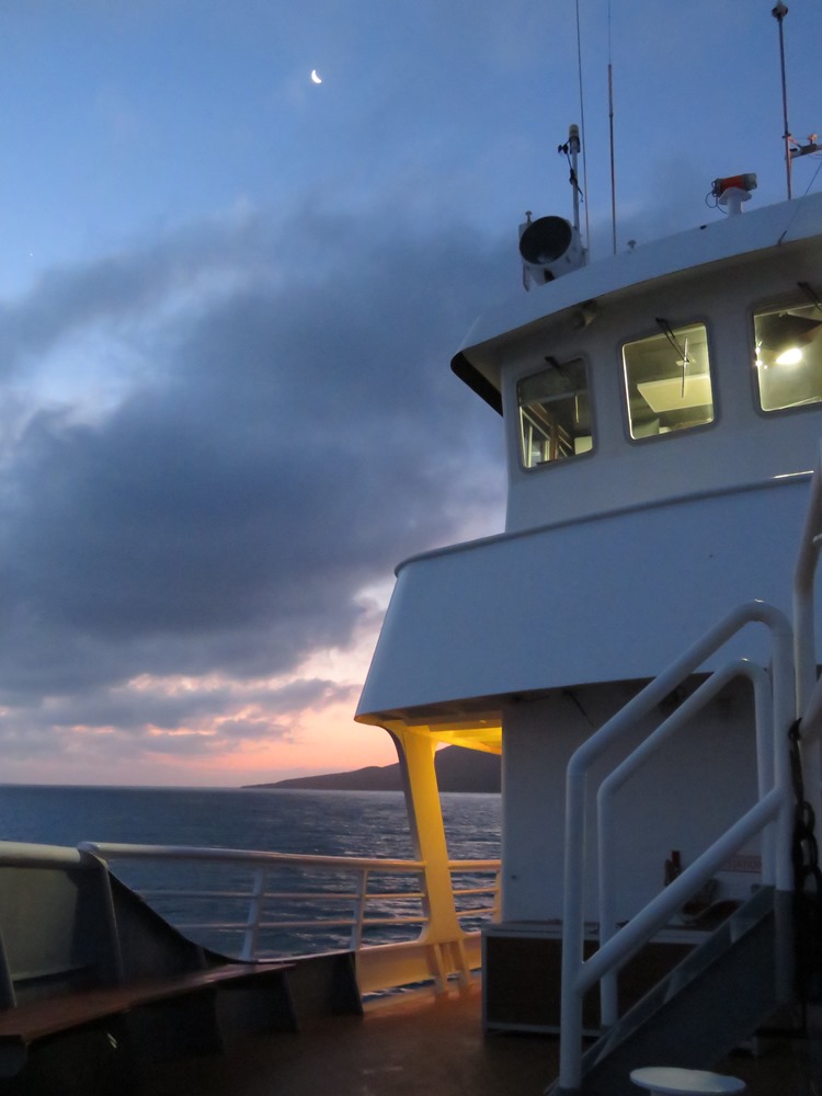First thing in the morning, wellness therapist Allison Dickey and a group of enthusiastic guests did the morning stretch class prior to our outing to watch whales.