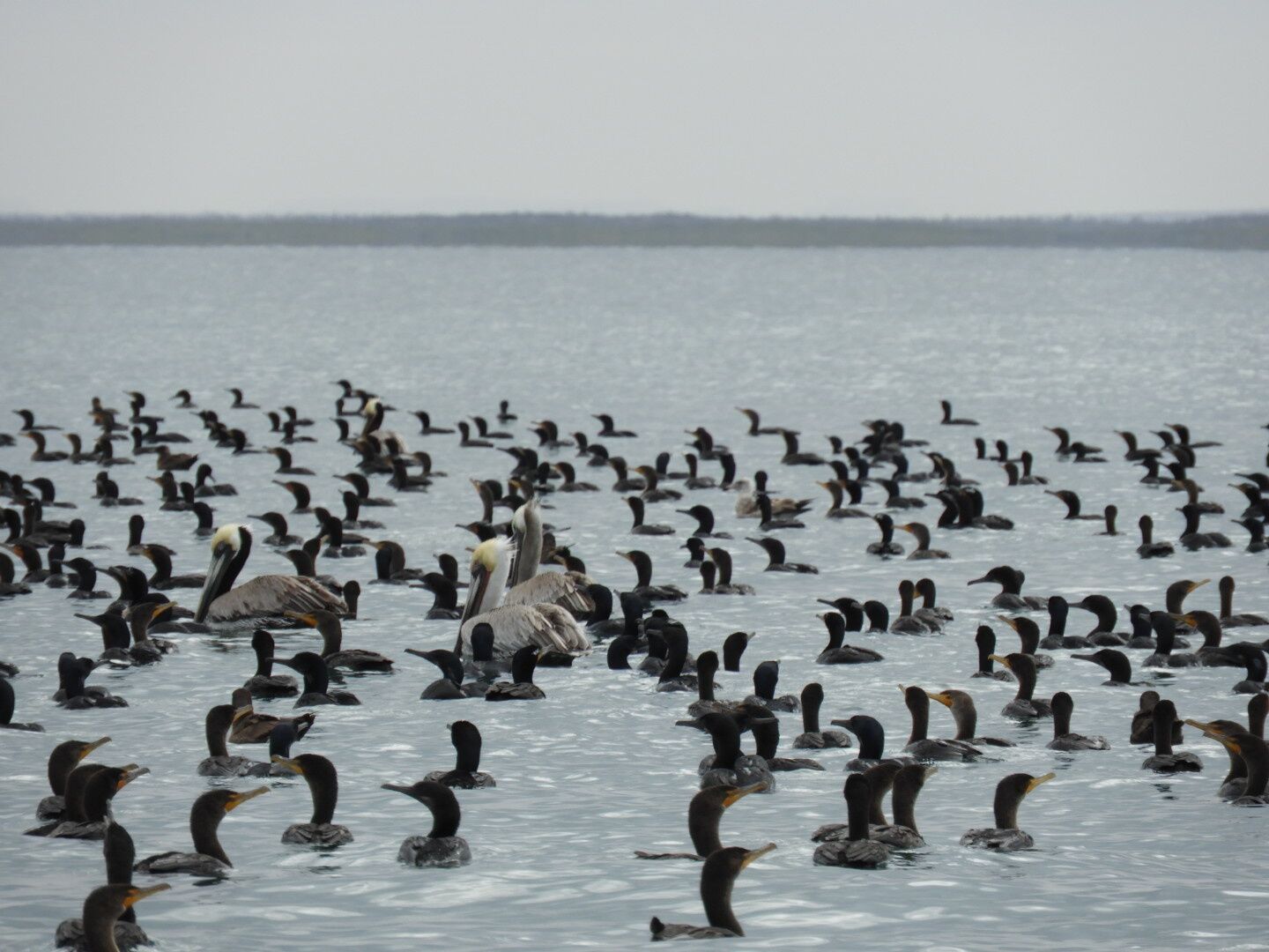 We were treated to two sightings of mother and calf gray whale pairs, 7 different single adults, juvenile gray whales, and excellent bird sightings. To the delight of the guests onboard, we observed the breeding plumage of the male magnificent frigate atop the mangrove nesting area and also a juvenile bald eagle sitting very near two groups of nervous double-crested and Brandts cormorants.