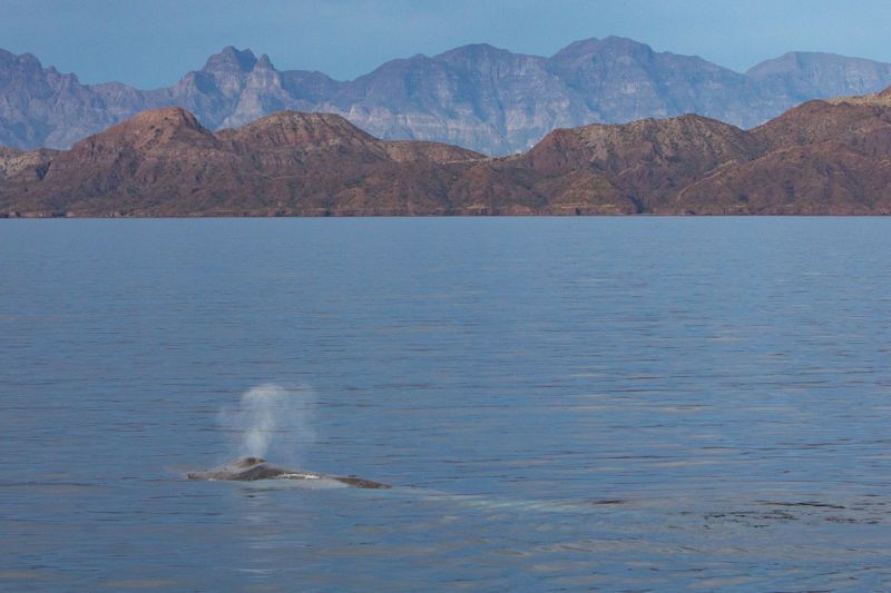The first day of our exploration aboard the National Geographic Sea Bird started in the quiet waters of the Magdalena Coastal Lagoon, right in front of San Carlos town. Guests and naturalists disembarked and walked on the dunes of the long, sandy, wonderful, and 60-miles long barrier island called Magdalena. We observed a multitude of tracks form jackrabbits, coyotes, white-footed mice, hermit and ghost crabs, and found the marvelous dune plants clustered in green and red carpets all over the place. On the Pacific side, thousands of different shells were awaiting for us to enjoy and photographing them. Some of our guest met scallops, pen shells, fig snails, tivela clams, white Venus and other types of the amazing mollusks, whose antiquity as a group is about 500 million years. Later, a local navigation adviser named Sergio joined us to cruise northward along the narrow canal, and all aboard observed mangroves, and sea and shore birds under a light refreshing rain. As we crossed the nursery area of the gray whales, called La Florida, we started to see the first mothers and calves. At the end of the day in this ecosystem, our guests and staff landed in the little, fancy pier of Adolfo Lopez Mateos, and explored part of this little town.