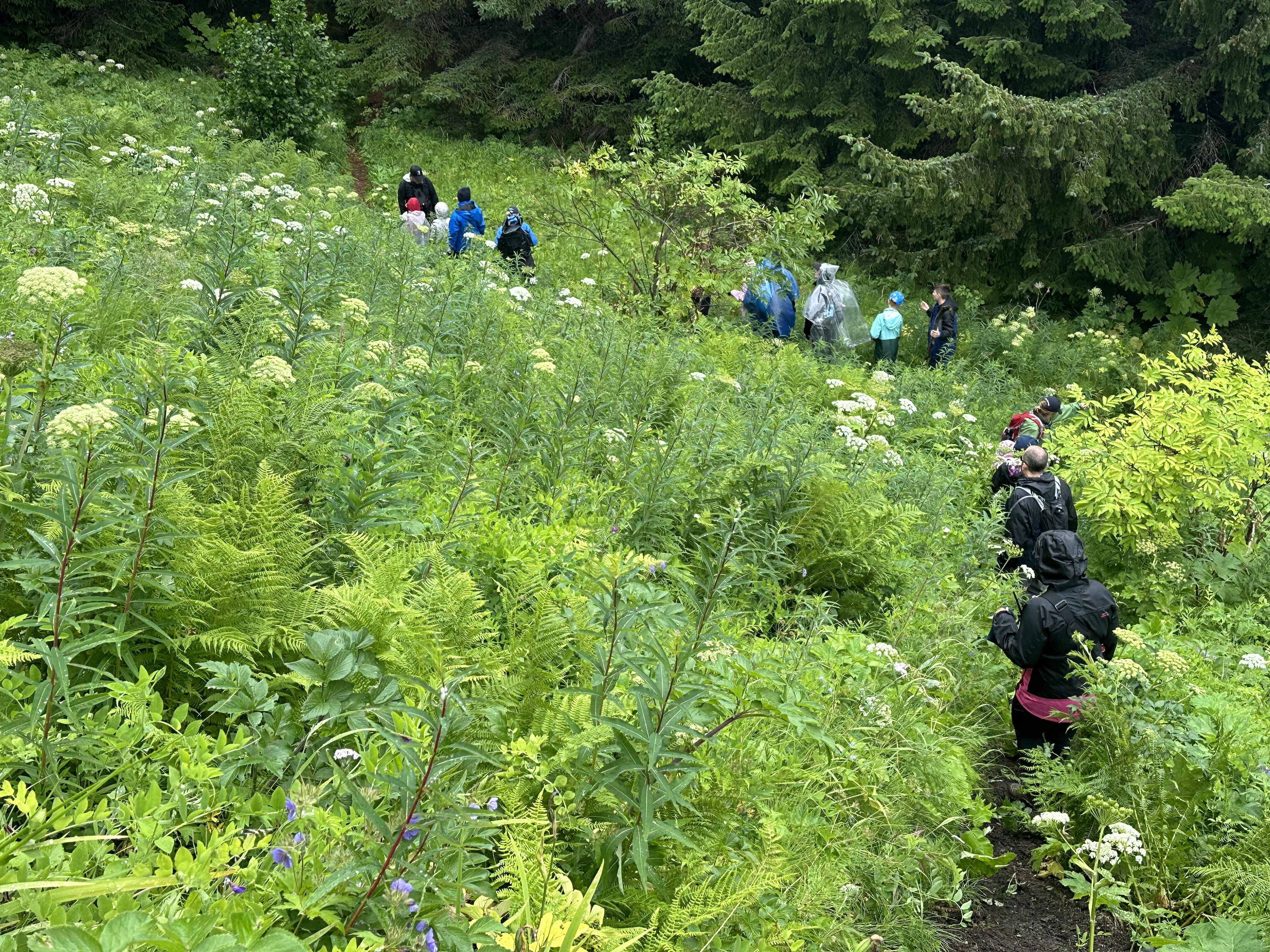 The morning was spent doing Zodiac tours, kayaking, and paddleboarding. Guests were able to explore the coves of the bay; many came back to report having moments listening to nothing but natural sounds. Just as the last of us were returning to the ship for lunch, a boat driven by Andy Zabbo appeared. Andy is a local researcher focusing on humpback whales, and he came to present on the research. Afterwards, we set a course for the town of Petersburg while searching for humpback whales and wildlife.