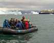 This morning, we awoke to beautiful colors covering the shorelines of Bowdoin Fjord. Several guests had stayed up into the small hours to watch the golden hour highlight the yellow and red hues among the sedimentary rock layers. The new day saw us cruising through icebergs littering Inglefield Gulf into Barden Bay. Here the scout team investigated several landing spots before selecting the head of the bay, close to where the glacier brings thousands-year-old ice from the Greenland Ice Cap into the fjord and out to Baffin Bay. The remains of the terminal moraine offered us a cobbly walk to an overlook over the glacier with both floral and insect highlights. Some guests opted for a leisurely Zodiac cruise around the bay, imagining the histories of the beautiful icebergs littering the red surface and dyed various shades by the silt running off the iron-enriched shorelines.
