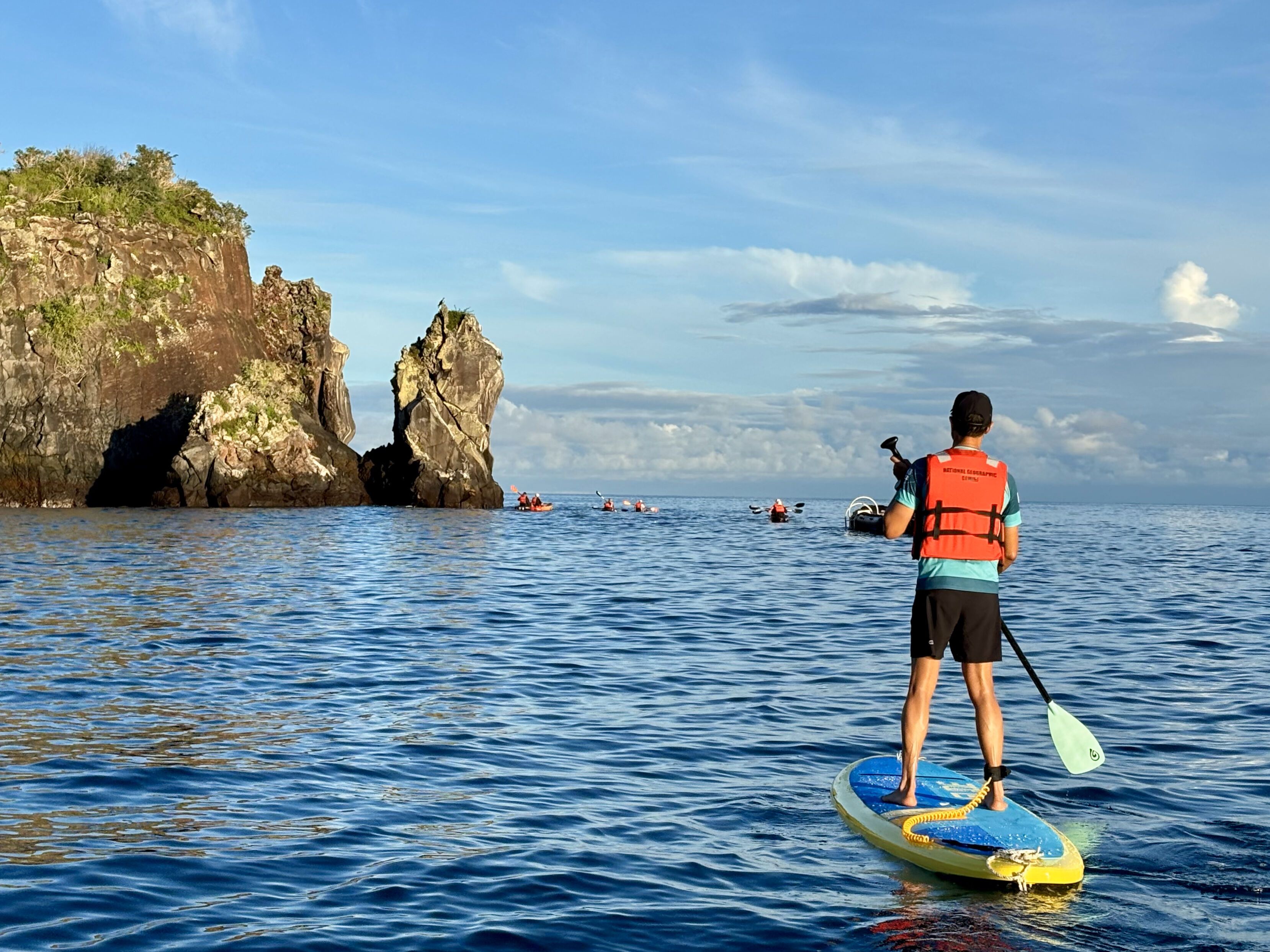 We woke up early today to climb to the summit of Bartolome Island. Once you get to the top the view is breathtaking; the scenery is so dramatic and full of volcanic formations, it looks like the moon or Mars. Along the shoreline we found many Galapagos penguins fishing in the water and basking on the black rocky lava. Later on the beach, we had a lot of fun swimming, snorkeling, and strolling along the shore.