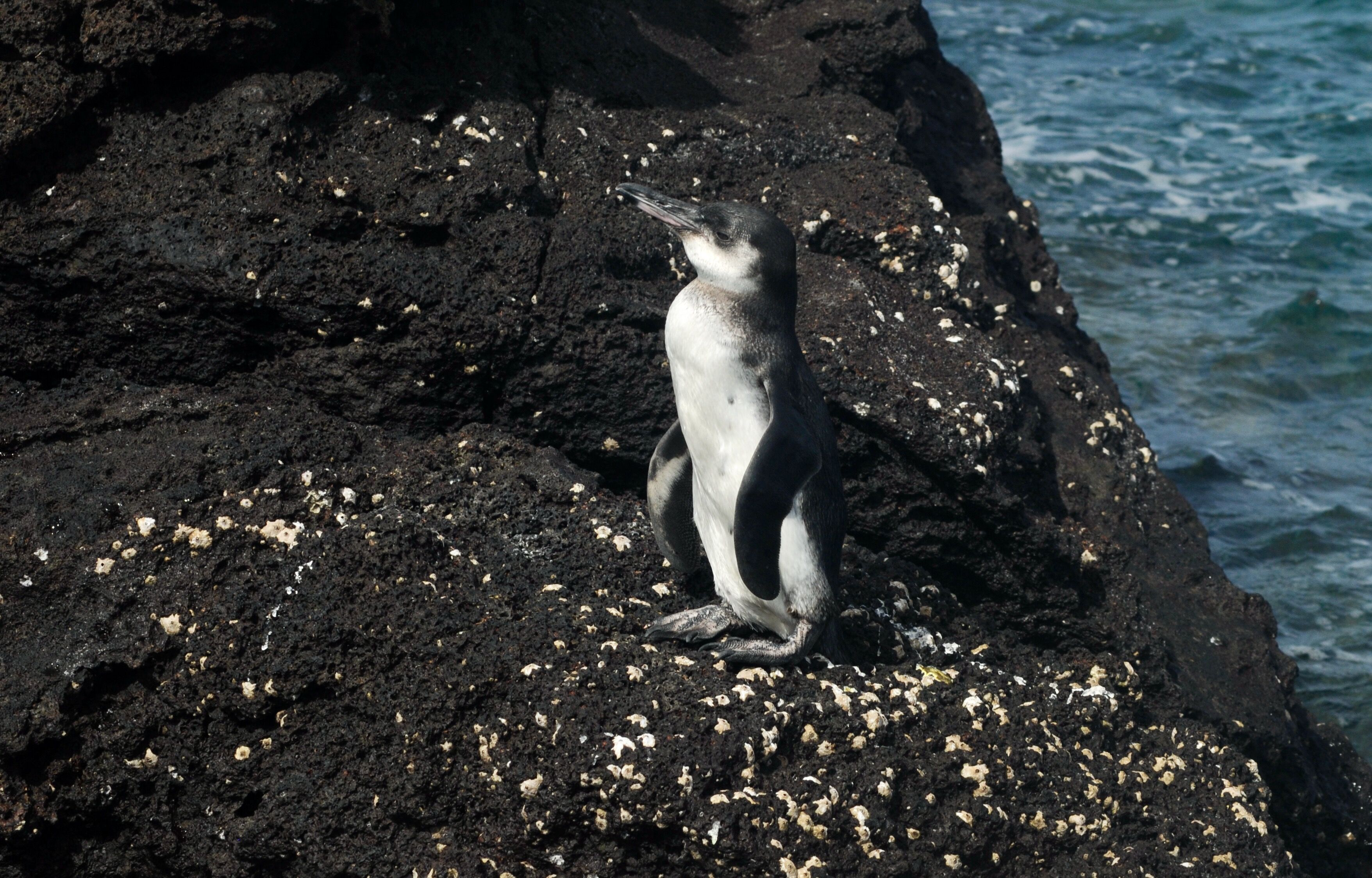 The highlight of the day came in the afternoon as we explored Chinese Hat, a small cinder cone with striking lava formations. A Zodiac exploration took us along the shoreline where we spotted three Galapagos penguins resting on the lava rocks. These unique seabirds, the only penguins found north of the equator, stood side by side, preening and occasionally glancing towards the water as if contemplating their next dive.