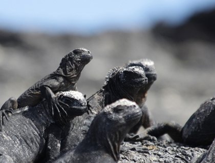 In the afternoon, we are anchor at Rabida, or the red island. The first group of explorers boards kayaks, heading for a protected section of the island where the wind and currents are not so strong. Following the kayakers are the deepwater snorkelers, who explore the same area under water. Both groups have a great time in the ocean.