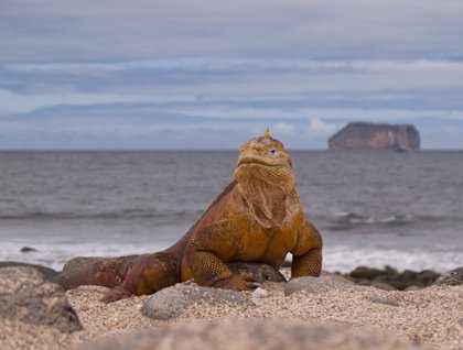 After lunch, we anchored at Rabida, the red island, located on the southern coast of Santiago Island. Here we had a full afternoon program. Kayakers cruised along the coast, where birds perched on rocks and turtles showed their heads in the water. Meanwhile, deepwater snorkelers swam with tropical and reef fish. At the end of the day, we disembarked on the beautiful beach to see a large group of blue-footed boobies diving and a great colony of sea lions. Another day in paradise.