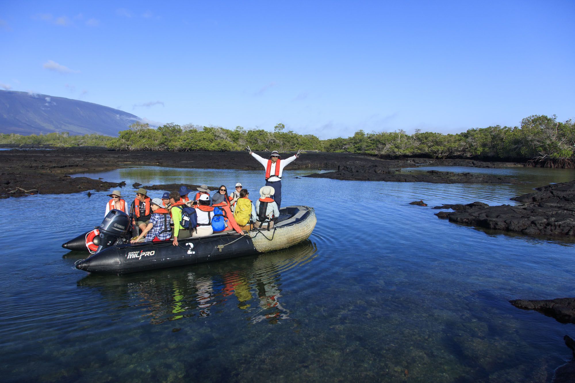After the morning exploration, we came back on board to have breakfast then we went to the beach to swim and to have an easy snorkeling, other guests went to the coast for deep water snorkeling. They had great experiences with plenty of marine wildlife. The highlight was a flock of 15 penguins swimming along the shoreline and a sea lion eating a fish, because of that a Galapagos shark came so close to us. That was a memorable morning!