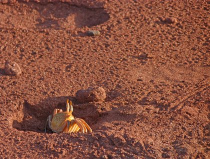 Reflections of a dark orange sun are shown on the clouds as we awaken at Bartolome Island. At first glance we seem to be surrounded by desolate arid islands. However, upon closer inspection we find an interesting mix of vibrant life.