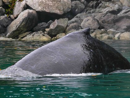 We enjoyed – and deserved – our breakfast following that hike. After the meal I talked about our snorkeling program and snorkel safety, and then we all went up to the sky deck where the naturalists helped us get suited up for snorkeling. We disembarked on a golden beach where everyone went into the water and most of us were successful with the gear. We saw white tipped reef sharks, an octopus and a feeding marine iguana, plus dozens of species of fish.