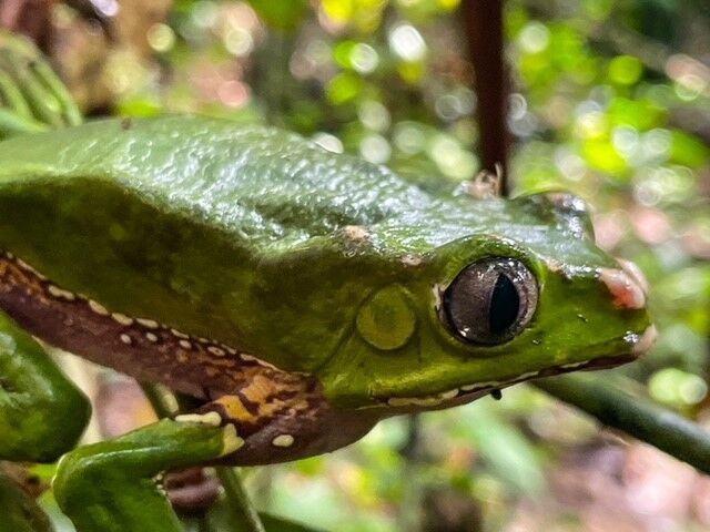 After a delicious meal in the afternoon, we visited Cerro Dragon on the north coast of Santa Cruz Island. This area hosts a population of Galapagos land iguanas. We found a number of iguanas walking along the trail as they fed on the lush, green vegetation of the island. Very soon, the landscape will be so dry that prickly pear cacti will be the only source of water for the iguanas until the next rains come in December. We ended the day with our traditional recapitulation, followed by a delicious meal onboard National Geographic Islander.