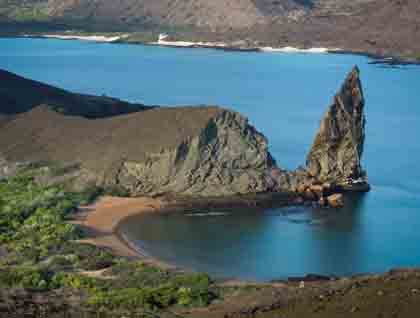 During lunch, the National Geographic Endeavour sailed a few miles further south, past the Bainbridge Islets, so as to anchor a few hundred meters to the north of Chinese Hat. This small parasitic cone is separated by a narrow sandy channel from the main island of Santiago.