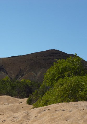 Exploring the underwater world of Bartholomew where the waters around Pinnacle Rock are full of interesting life and the water temperature had decreased, we found plenty of life as cooler waters has more productivity. Galápagos sea lions, Galápagos penguins, and sharks were spotted as well as a wide variety of tropical fish. The golden beach north of Bartholomew, a beautiful place, is made out a semi-precious stone named olivine.