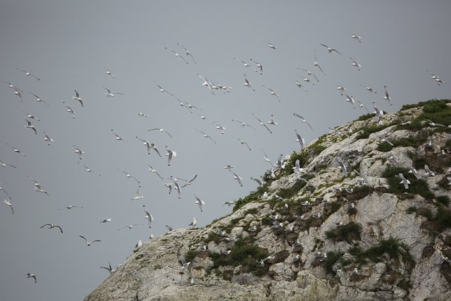 Sadly, our expedition aboard National Geographic Gemini is nearing its end. Our day began with a hike at the base of towering cliffs. A steep ascent led us to a plateau of a palo santo forest, sparse and otherworldly. Almost immediately, we were surrounded by red-footed boobies nesting in low trees and Nazca boobies on the ground. A highlight was spotting a short-eared owl perched silently among a lava crevice, camouflaged and hunting storm petrels. The calls of frigatebirds rang in the air, with their inflated red pouches on full display in a mating show. After our hike we enjoyed water activities, such as kayaking along the cliffs and snorkeling. In the late afternoon, we landed on the coral sand beach of Darwin Bay. Guests enjoyed a relaxing stroll along the shoreline bordered by mangroves and nesting bird colonies. The presence of swallow-tailed gulls, lava herons, and marine iguanas provided excellent photo opportunities.