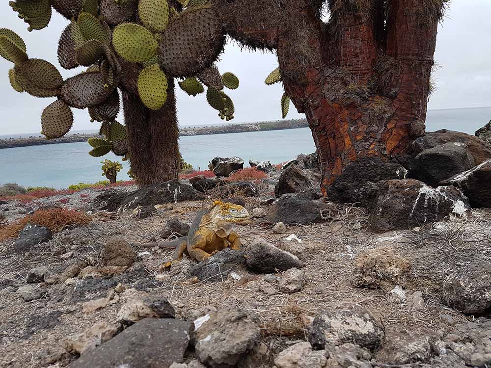 In the afternoon, a short navigation brought us to Sombrero Chino, a satellite island of Santiago. This island looks deceptively desolate; however, it actually holds an abundance of life. During our Zodiac rides, we encountered a great deal of wildlife, with Galapagos penguins being the star of this theatrical presentation. A dark sky looms overhead as we return onboard our floating home, and the curtain falls upon this show that impresses all.