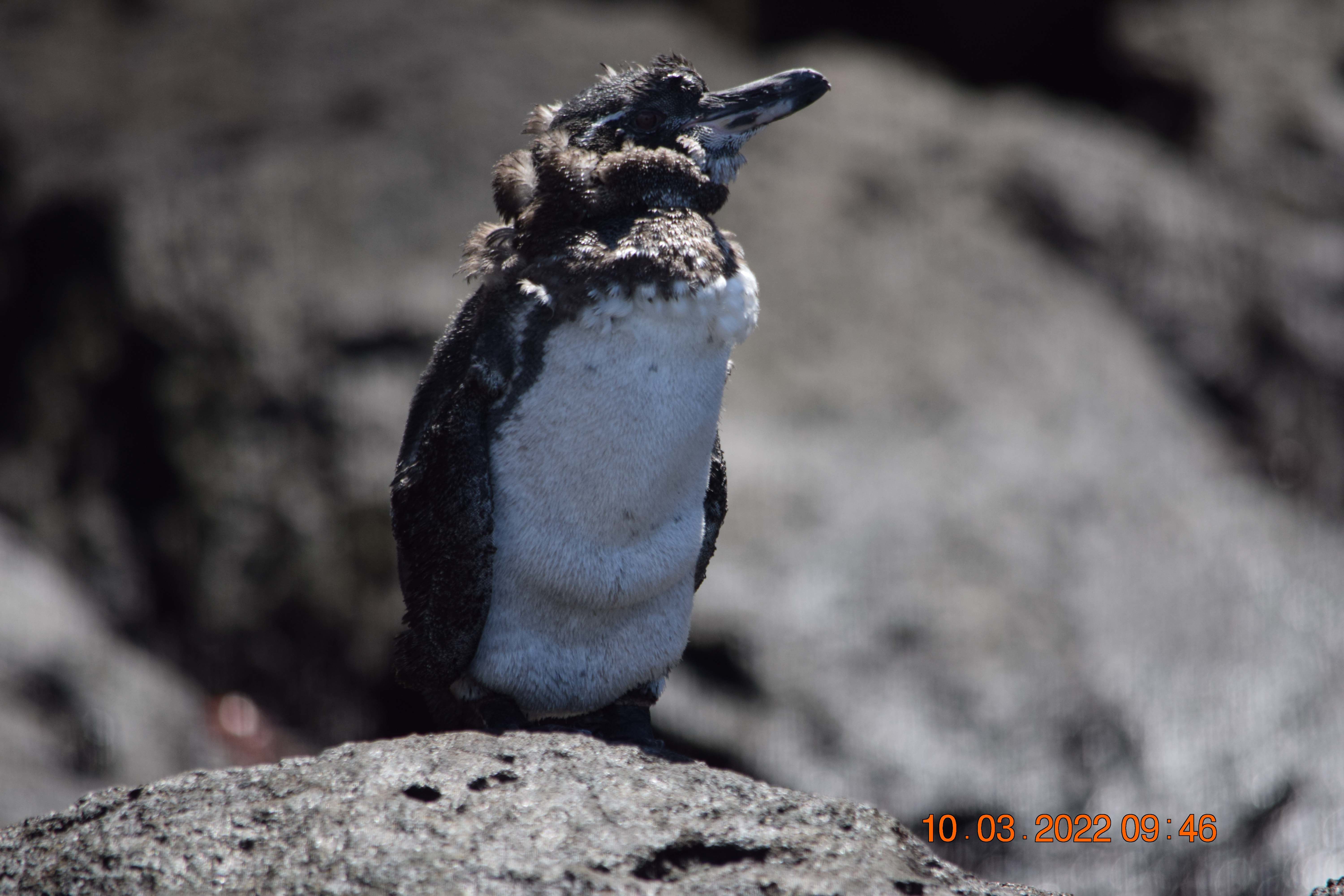 We started our day early morning with the sunrise. Our guests met our team of naturalists on the deck to disembark to Bartolome Island. This is one of the most iconic and well-known islands in the Galapagos archipelago. We had our morning workout, walking the 374 steps that lead to the peak of this small but good-looking island. Once there, we enjoyed one of the most famous and breathtaking views in all of the Galapagos. On our way back, we could not miss the opportunity to go on a short Zodiac ride in search of penguins! We found the cutest and fuzziest penguin of all, a young penguin warming up in the morning sun.