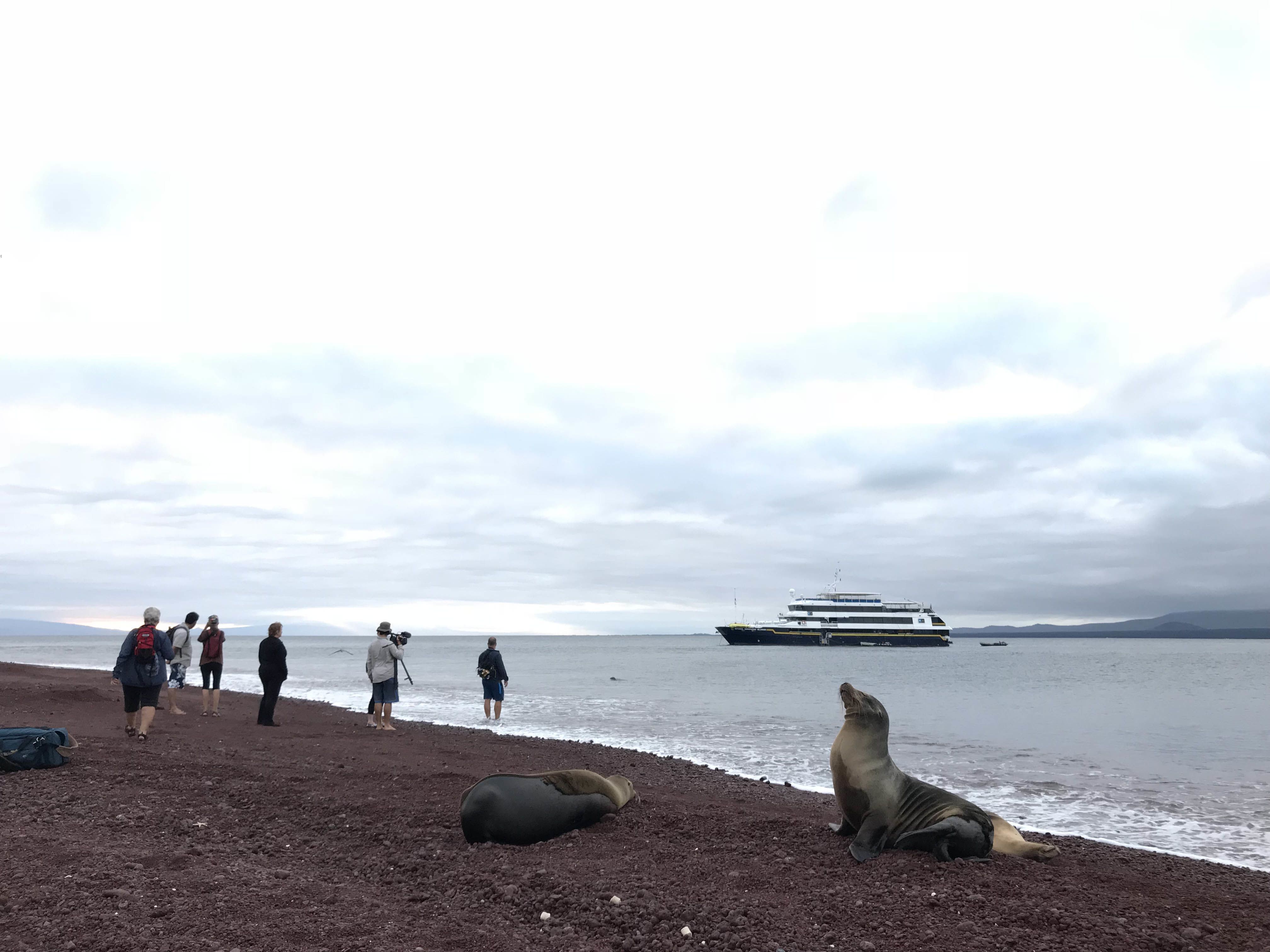 After a few hours of navigation, we arrived at Rábida Island to continue our Galapagos adventure. This Island has great water activity opportunities such as kayaking, paddleboarding, and snorkeling. To finish our day, we had a stroll along the red sandy beach with Galapagos sea lions, blue-footed bobbies, and pelicans who plunged for food along the coast.