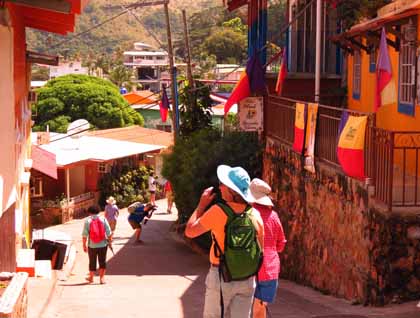 The morning outing was an extra bonus offered only when our Panamanian hotel manager Erasmo is on board. Taboga Island or “the flower island” has been his vacation home since childhood, so he kindly invited all 61 guests to walk through this little town and into his house for fresh-squeezed passion fruit drinks. The island is accessible by ferry from Panama City and is a well-known weekend destination for the locals. It was a pretty nice cultural visit, seeing the church, the narrow little roads, and the colorful houses. The famous painter Paul Gaugin made his home here for a while. After walking through this friendly town, we went back on board and off towards our Panama Canal appointment at Flamenco Signal.