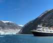 The conclusion of James’ lecture came just before lunch. After lunch, archeologist Natasha Slobodina led two separate groups of guests on guided tours of the curated art exhibit on board National Geographic Endurance. A little later in the afternoon, geologist Joe Holladay gave a lecture on the geology and glaciology of Alaska. The day concluded with clearing skies. As we sailed eastward along the coast of Alaska, the coastal Brooks Range peaks, still snowcapped, made for a wonderful salute to our pending departure of Alaskan waters.