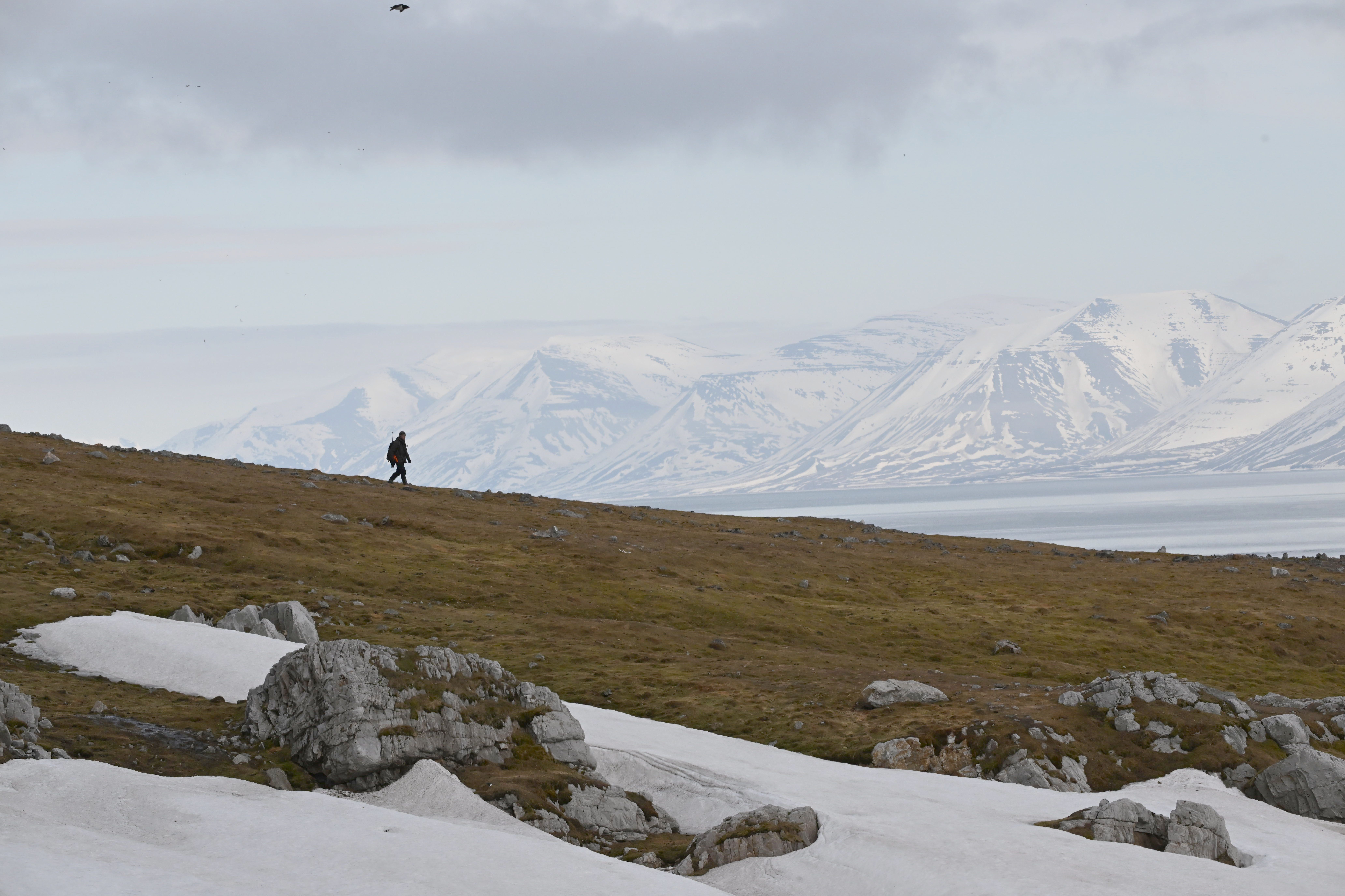 In the afternoon we were guided to a landing at Ingeborgfjellet where reindeer greeted us on the plain above the rocky beach. The more adventurous climbed the rocky bench up to the talus slopes where we were able to see hundreds of thousands of nesting dovekie (little auks). It was a spectacular opportunity to see thousands of birds circling as they prepared to head out foraging to feed their young.